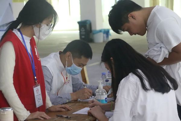 工作人員為獻血成功的同學們進行登記,頒發(fā)獻血證并贈送小禮品(無償獻血是指為拯救他人生命,志愿將自身的血液無私奉獻給社會公益事業(yè),而獻血者不收取報酬的行為。但是,獻完血后,領取小紀念品是合理的)。
