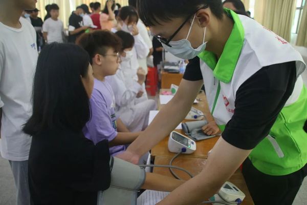 工作人員幫助同學們測量血壓