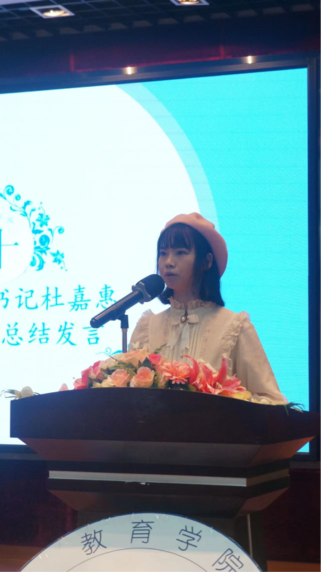 會議最后,由杜嘉惠老師做閉幕發(fā)言,本次學生代表大會充分體現(xiàn)了公開、公平、公正的干部選舉原則,為有才能的同學提供了一個展示自我的平臺,也為學校學生工作之后工作的開展備足了后備力量。此外,她還表示學生會應(yīng)進一步激發(fā)內(nèi)生動力,激發(fā)基層學生組織活力,不斷保持和提高學生會工作人員服務(wù)奉獻意識,筑造有高度、有溫度、有力度的學生會組織;牢記全心全意為同學們服務(wù)的宗旨,恪守學生本分、牢記服務(wù)宗旨、永葆理想情懷、勤勉務(wù)實做事、營造平等氛圍、摒棄庸俗習氣,杜絕官僚現(xiàn)象的產(chǎn)生,塑造清新陽光的學聯(lián)學生會組織形象。
