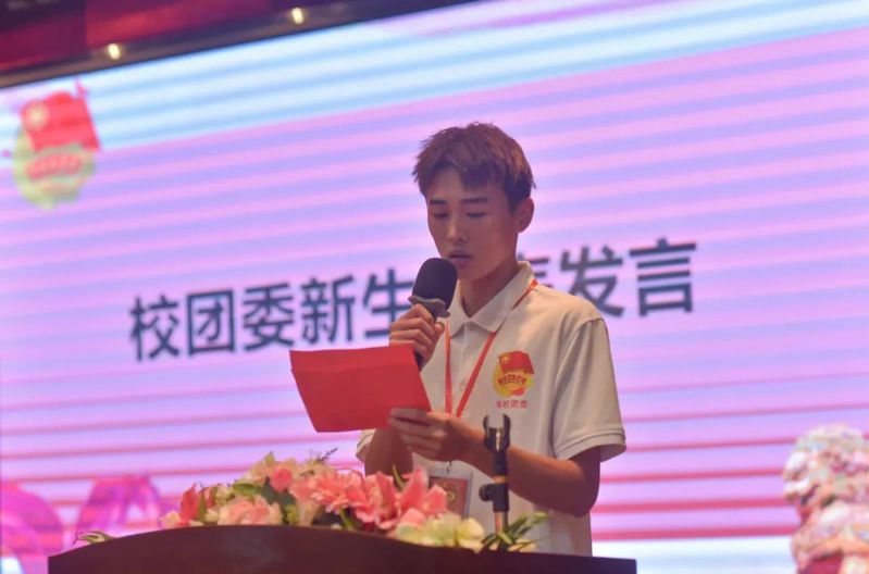 緊接著由校團(tuán)委新生代表潘政謀同學(xué)上臺發(fā)言,他說生活是最好的老師,我們作為新一代的青年應(yīng)當(dāng)磨煉勵(lì)志、鍛煉自己、端正自己的態(tài)度、為校團(tuán)委貢獻(xiàn)自己最大的力量。