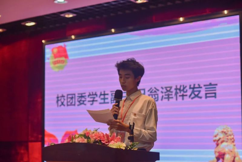 接著校團(tuán)委書記處副書記翁澤樺同學(xué)上臺發(fā)言,他表示將秉承“引領(lǐng)思想、服務(wù)同學(xué)、鍛煉自我”的宗旨,要以負(fù)責(zé)任的態(tài)度對待各項(xiàng)工作,從嚴(yán)要求自己,共同為學(xué)校的發(fā)展作建設(shè),隨后他帶領(lǐng)全體團(tuán)委成員進(jìn)行宣誓。