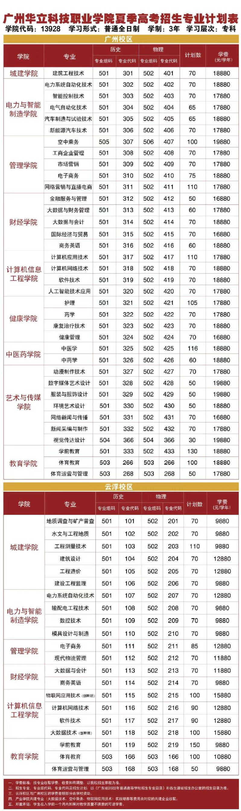 2022年廣州華立科技職業(yè)學(xué)院夏季高考招生計(jì)劃表