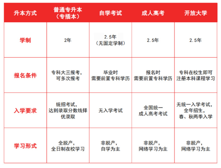 二、專升本四種方式(途徑)比較