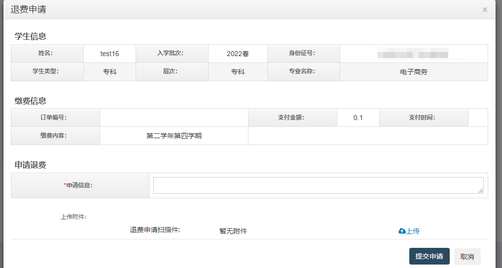 操作路徑:新生退費(fèi)管理>>退費(fèi)申請(qǐng)。