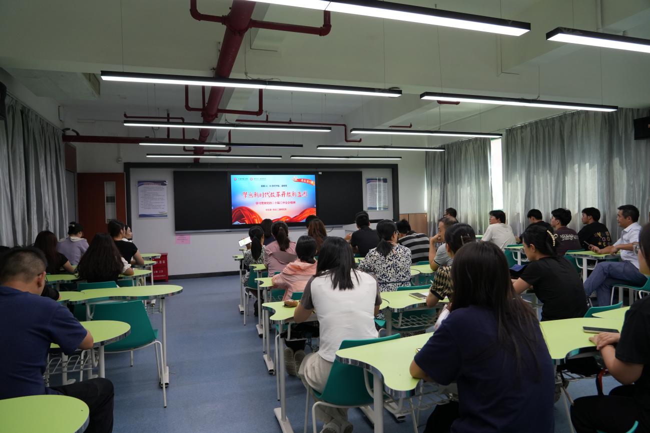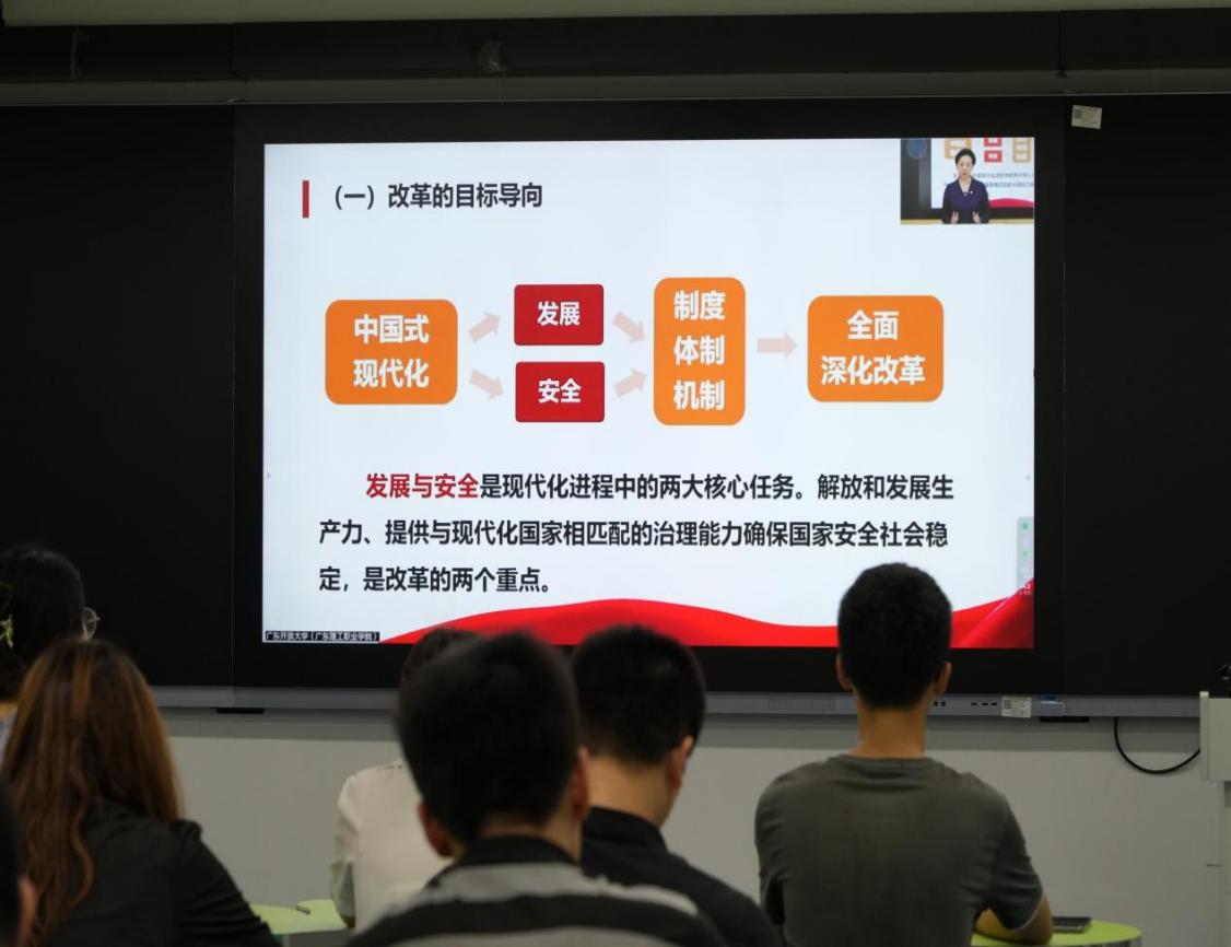 2024年9月5日下午,廣東開放大學(xué)黨委副書記、校長(zhǎng)劉文清以“擘畫新時(shí)代改革開放新藍(lán)圖——學(xué)習(xí)貫徹黨的二十屆三中全會(huì)精神”為主題,通過網(wǎng)絡(luò)直播面向全省開大體系師生講“思政第一課”。華立分校通過微信、QQ等方式通知全體學(xué)生收看,同時(shí)組織部分師生在西三教學(xué)樓211課室集中觀看和學(xué)習(xí)交流。