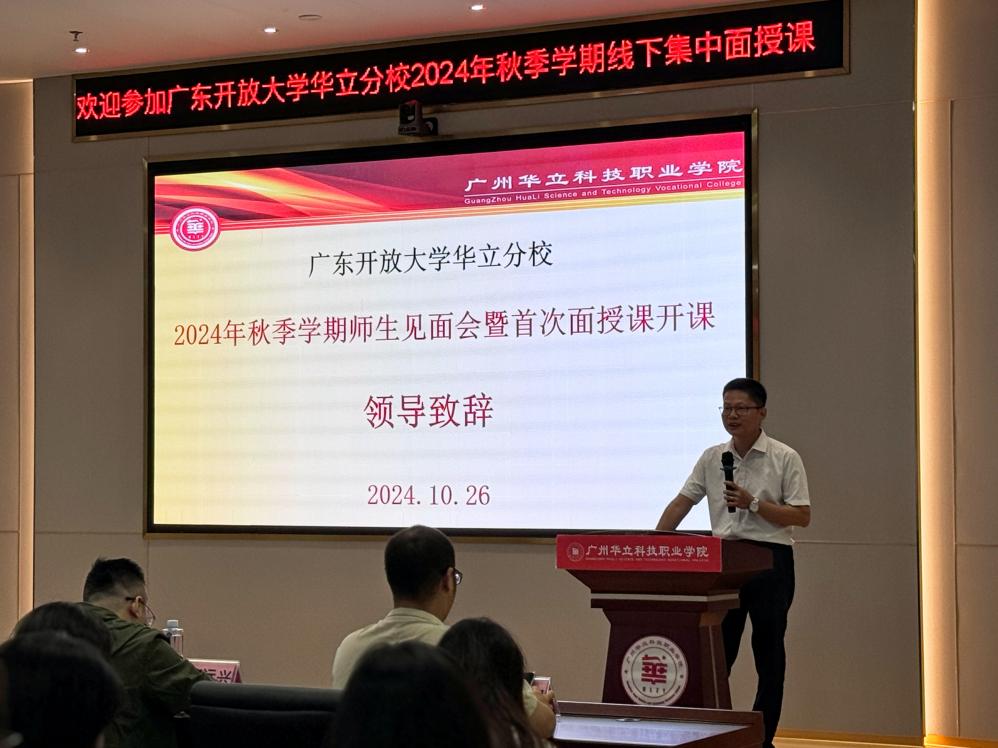 10月26日上午,廣東開放大學(xué)華立分校2024年秋季學(xué)期師生見面會暨首次面授課開課在廣州華立科技職業(yè)學(xué)院圖書館104講學(xué)廳舉行。華立分校教學(xué)點負(fù)責(zé)人、廣州華立科技職業(yè)學(xué)院繼續(xù)教育學(xué)院領(lǐng)導(dǎo)、輔導(dǎo)教師、導(dǎo)修老師、學(xué)生代表出席了本次見面會。本次見面會由繼續(xù)教育學(xué)院鄭潔萍老師主持。