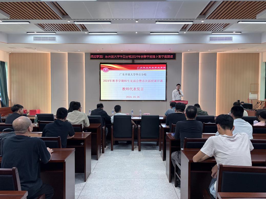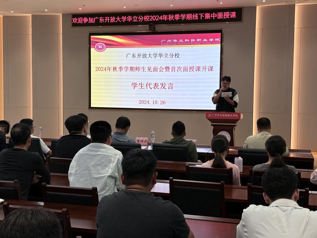 10月26日上午,廣東開放大學(xué)華立分校2024年秋季學(xué)期師生見面會暨首次面授課開課在廣州華立科技職業(yè)學(xué)院圖書館104講學(xué)廳舉行。華立分校教學(xué)點負責(zé)人、廣州華立科技職業(yè)學(xué)院繼續(xù)教育學(xué)院領(lǐng)導(dǎo)、輔導(dǎo)教師、導(dǎo)修老師、學(xué)生代表出席了本次見面會。本次見面會由繼續(xù)教育學(xué)院鄭潔萍老師主持。