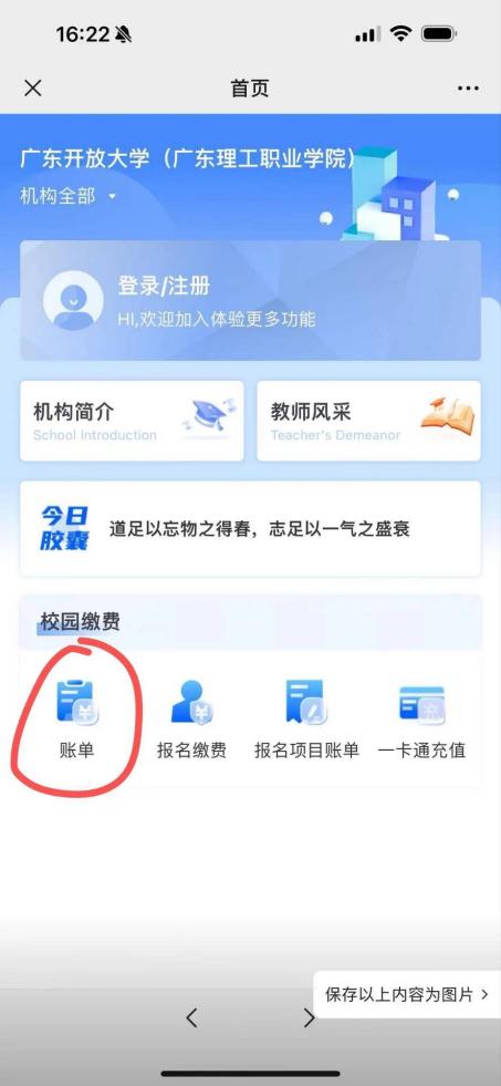 學生關(guān)注學校微信公眾號“廣東開放大學”--→“微招生”--→“學生繳費”
