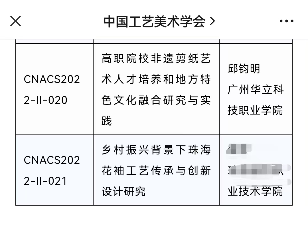 近日,從中國工藝美術(shù)學會傳來喜訊,廣州華立科技職業(yè)學院教育學院邱鈞明老師申報的課題《高職院校非遺剪紙藝術(shù)人才培養(yǎng)和地方特色文化融合研究與實踐》獲得中國工藝美術(shù)學會2022年度工藝美術(shù)科研課題研究項目立項!