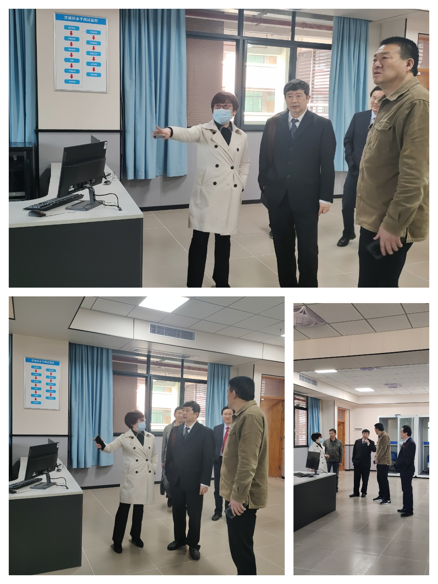 在普通話測試站,易校長詳細(xì)詢問了測試站項目建設(shè)情況,對測試站建構(gòu)、考生備考候考和測試提出了詳細(xì)周密、精準(zhǔn)合理可操作性強的意見,并就迎檢驗收工作希望學(xué)院上下高度重視,通力配合,沖刺階段,再把工作做細(xì)做實做到位,力爭以全新的面貌,高質(zhì)量、高標(biāo)準(zhǔn)通過省語委辦領(lǐng)導(dǎo)和專家的驗收,為學(xué)校規(guī)范達(dá)標(biāo)和品牌提升打造一張亮麗的名片。