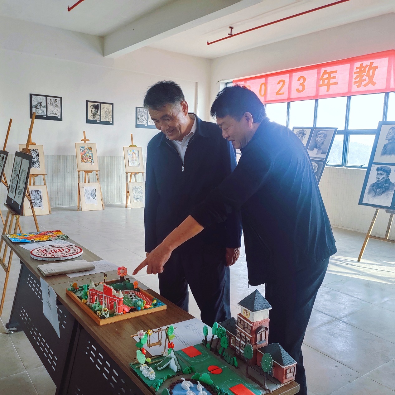 展覽期間,校長陳德清、副校長王洪艷及教務(wù)處全體教師紛紛到場指導(dǎo),對同學(xué)們的作品給予了高度評價。稱同學(xué)們觀察生活細致,制作過程心靈手巧創(chuàng)意新。同時希望學(xué)院不斷打造特色,樹立品牌提升意識,把藝術(shù)展做大做強,走向社會,更好服務(wù)于兩個文明的建設(shè)。