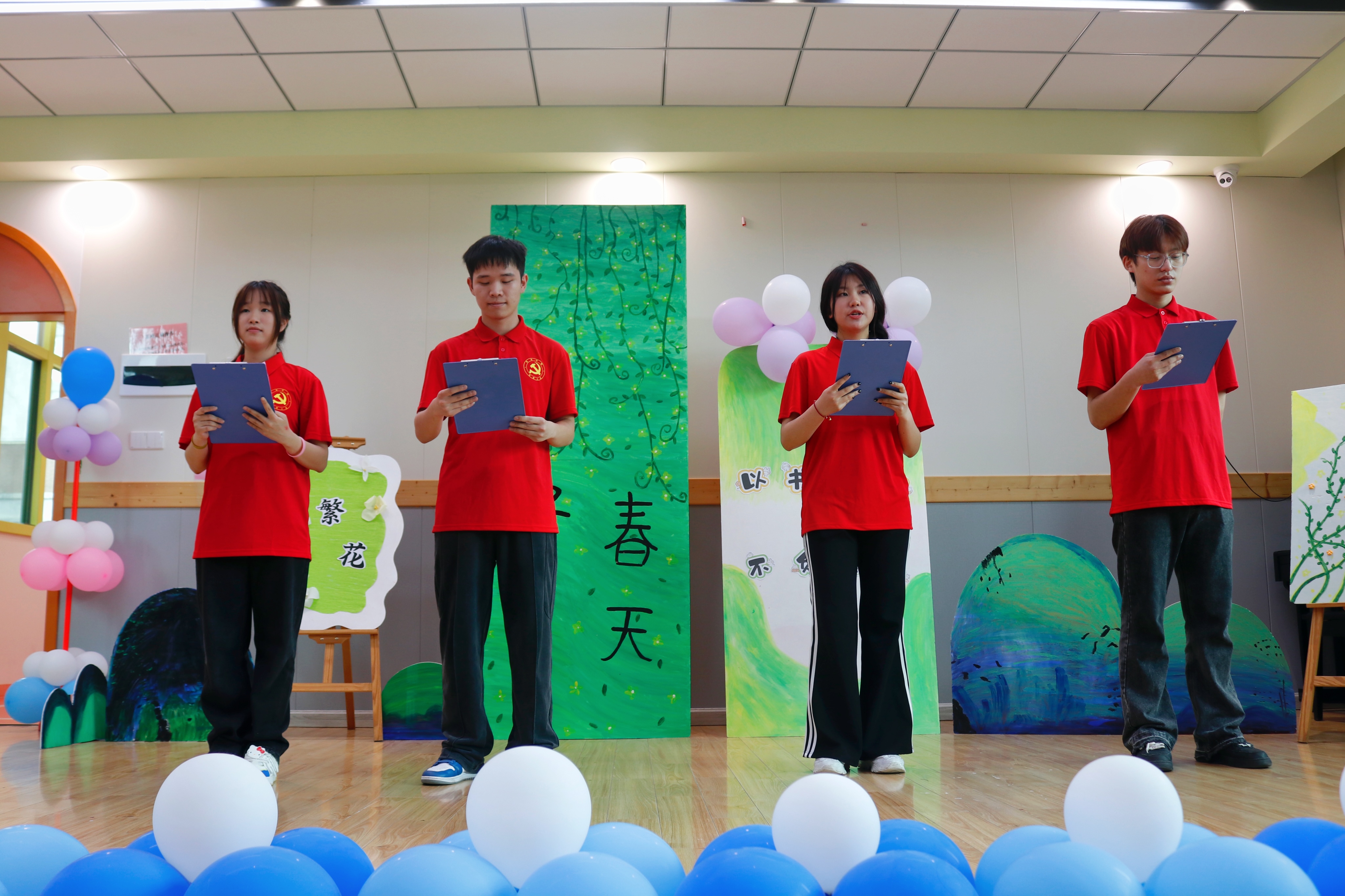 活動(dòng)伊始,教育學(xué)院四位同學(xué)為到來(lái)的家長(zhǎng)和在場(chǎng)的小朋友們表演了詩(shī)歌朗誦《春的詩(shī)行》。他們飽滿且富有情感的朗誦,仿佛為現(xiàn)場(chǎng)家長(zhǎng)和小朋友們呈現(xiàn)出了春天生機(jī)勃勃的景象。志愿者同學(xué)表演結(jié)束后贏得了家長(zhǎng)們陣陣掌聲。