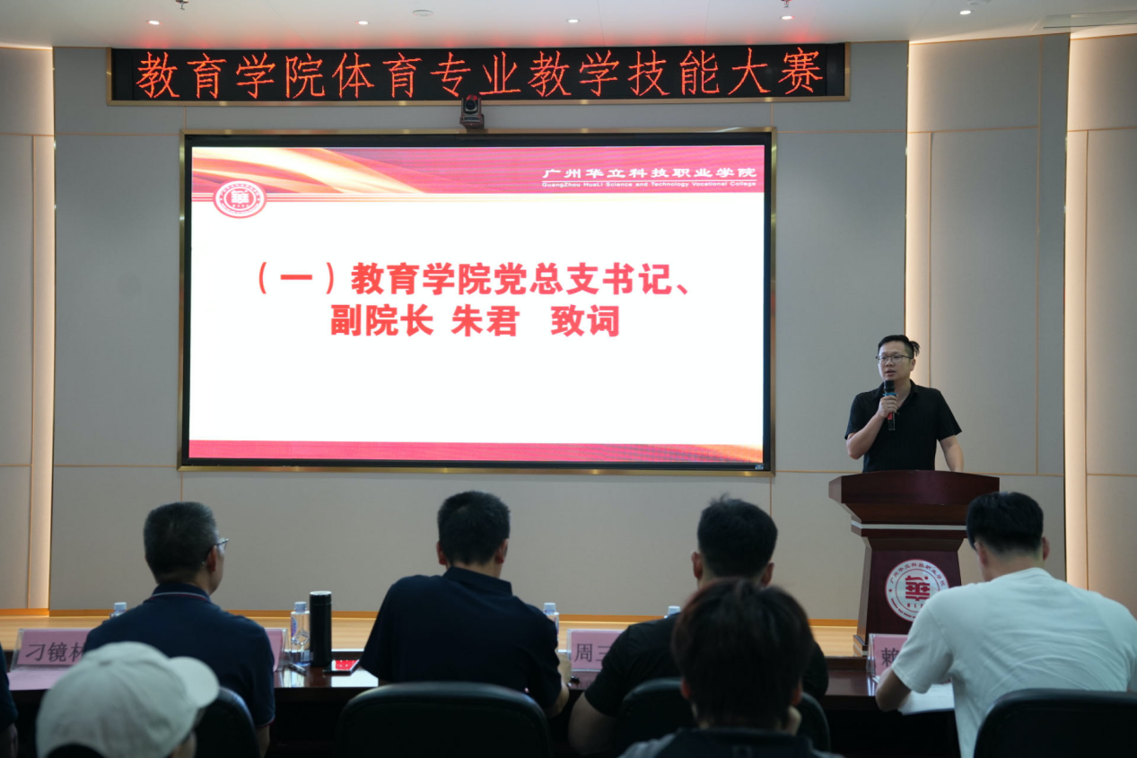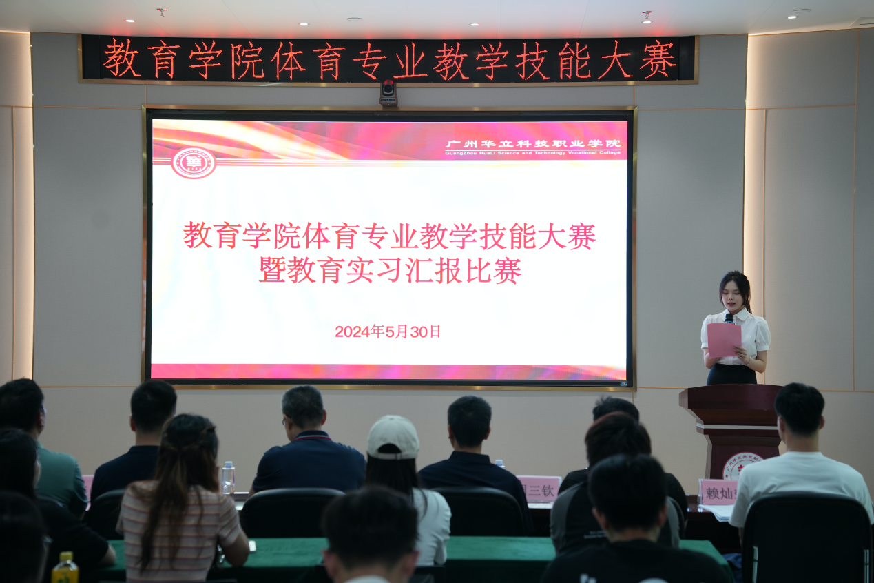 2024年5月30日下午15:30-17:30,廣州華立科技職業(yè)學(xué)院教育學(xué)院體育專業(yè)教學(xué)技能大賽暨教育實習(xí)匯報比賽在圖書館104匯報廳成功舉行。出席現(xiàn)場觀賽的領(lǐng)導(dǎo)包括副校長陳顯強和教務(wù)處副處長刁鏡林。評委陣容強大,涵蓋了廣州市增城區(qū)棋藝協(xié)會會長聶凱老師、增城維刻游泳健身中心總監(jiān)周三欽老師、增聯(lián)教育服務(wù)有限公司業(yè)務(wù)主管賴燦榮老師、體育專業(yè)副教授韋建林以及教育學(xué)院教學(xué)主任余悅強老師。