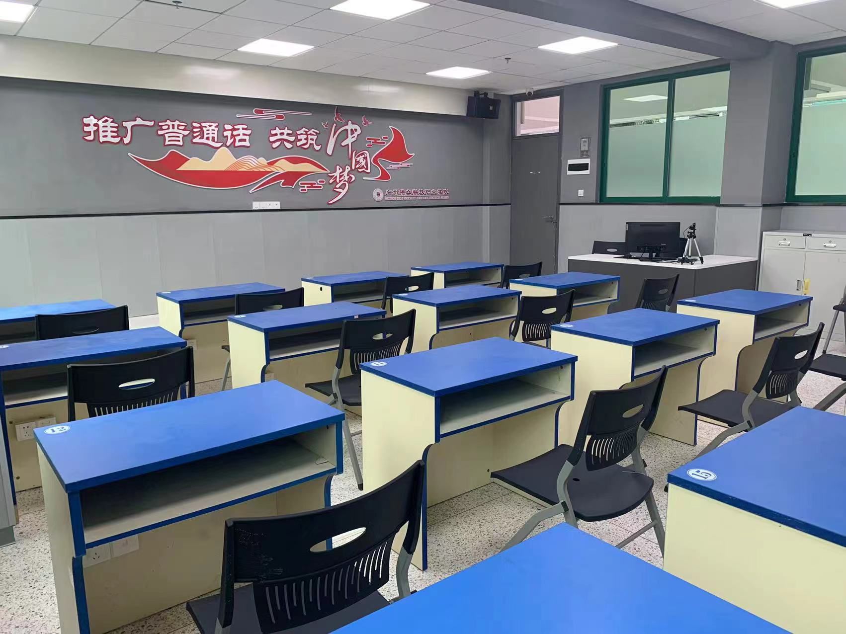 普通話測試站配套設(shè)施齊全,配備了設(shè)備先進、標準化的候測室、信息采集室和測試室,總面積為600平方(云浮校區(qū)360平方,廣州校區(qū)240平方);測試室語音倉24間(云浮校區(qū)10間,廣州校區(qū)14間),硬件設(shè)備達到省內(nèi)先進水平。
