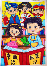 二等獎 | 24美術(shù)1班 陳偉鑫 | 《普通話傳情,規(guī)范字達(dá)意,民族共奮進(jìn)》 |