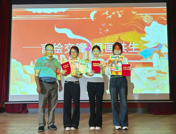 秋韻初染的華立校園,一場語言與繪畫交融的特色活動圓滿落下帷幕。值此第28屆全國推廣普通話宣傳周之際,我校于圖書館小禮堂舉辦“言繪交鋒·思畫共生”校決賽,比賽現(xiàn)場燈火璀璨,筆墨與思想交匯,色彩與鄉(xiāng)音交融。本次比賽由教育學(xué)院邱鈞明、譚燕勤、張志杭、欒瑞林,學(xué)校團(tuán)委雷洋五位老師擔(dān)任評委,與現(xiàn)場師生共同見證這場國家通用語言文字的絢麗之旅。