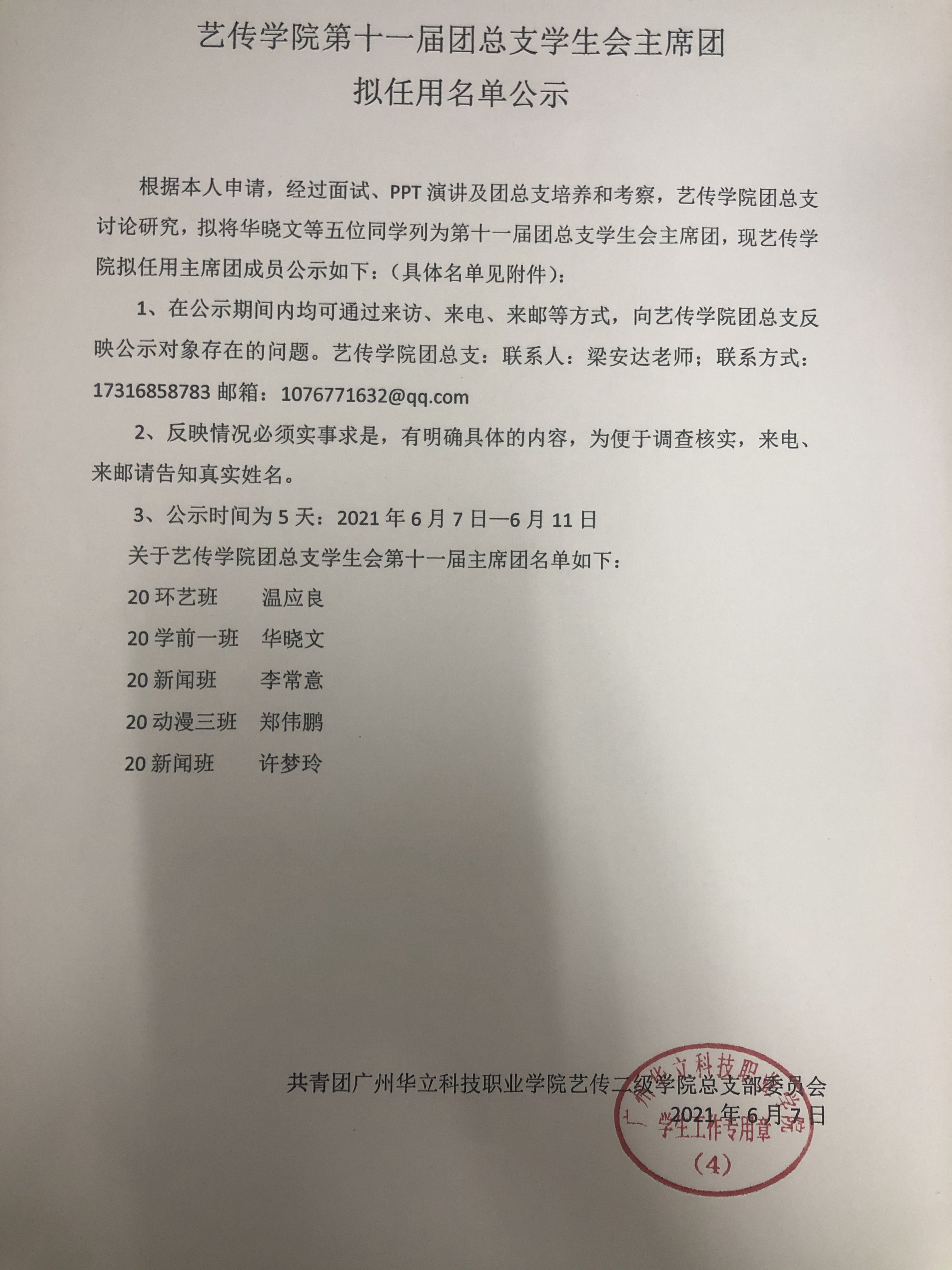 胡彩霞主任表示:主席團(tuán)是作為團(tuán)總支學(xué)生會中各部門的溝通橋梁,在其中發(fā)揮極其重要的作用,希望大家可以意識到擔(dān)當(dāng)這個角色的重要性。同時(shí)也希望成功競選的同學(xué)能夠兌現(xiàn)自己的承諾,履行自己的職責(zé),協(xié)助團(tuán)總支書記做好接下來的各項(xiàng)工作,最后預(yù)祝此次競選圓滿舉行。