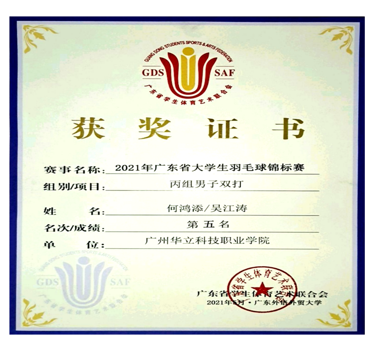 2021年5月17日,歷經(jīng)5天激烈角逐的廣東省大學(xué)生羽毛球錦標(biāo)賽落下帷幕。本次比賽由廣東省教育廳主辦,廣東省學(xué)生體育藝術(shù)聯(lián)合會(huì)執(zhí)行,廣東外語外貿(mào)承辦,我校積極組織學(xué)生隊(duì)伍參加比賽。