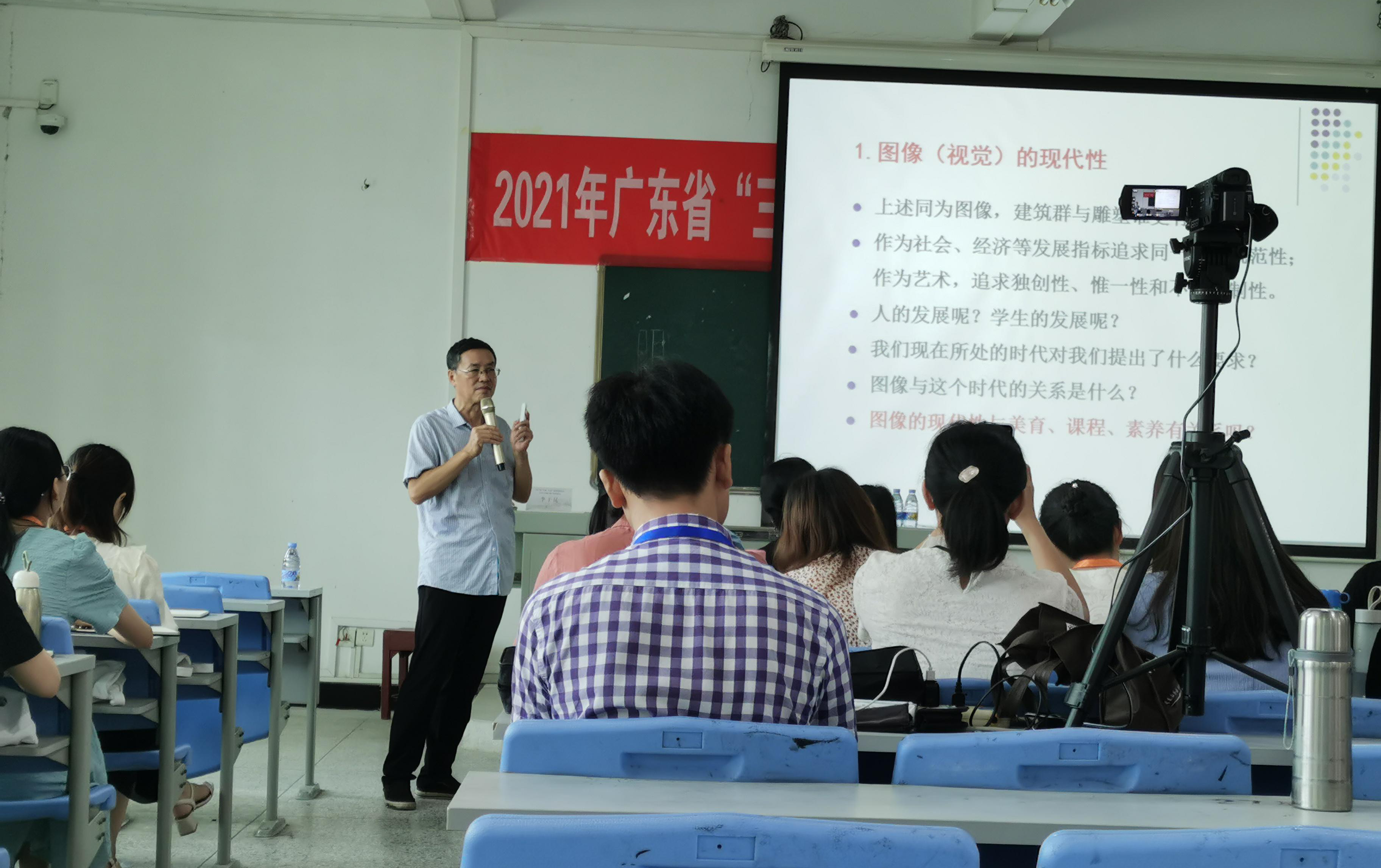 為深入貫徹《中共廣東省委 廣東省人民政府關于全面深化新時代教師隊伍建設改革的實施意見》、《廣東省教育廳關于開展我省“三區(qū)”教師全員輪訓工作的通知》等文件精神,全面提升“三區(qū)”(即革命老區(qū)、紅色蘇區(qū)和少數(shù)民族地區(qū))基礎教育教學質量和水平,2021年7月下旬到8月上旬暑期間,我院院長李于昆教授應邀分別到粵北南雄、樂昌和粵東潮州,為來自南雄、樂昌、惠東和饒平的中小學、高中和中職美術骨干教師作專題講座,進行現(xiàn)場培訓。