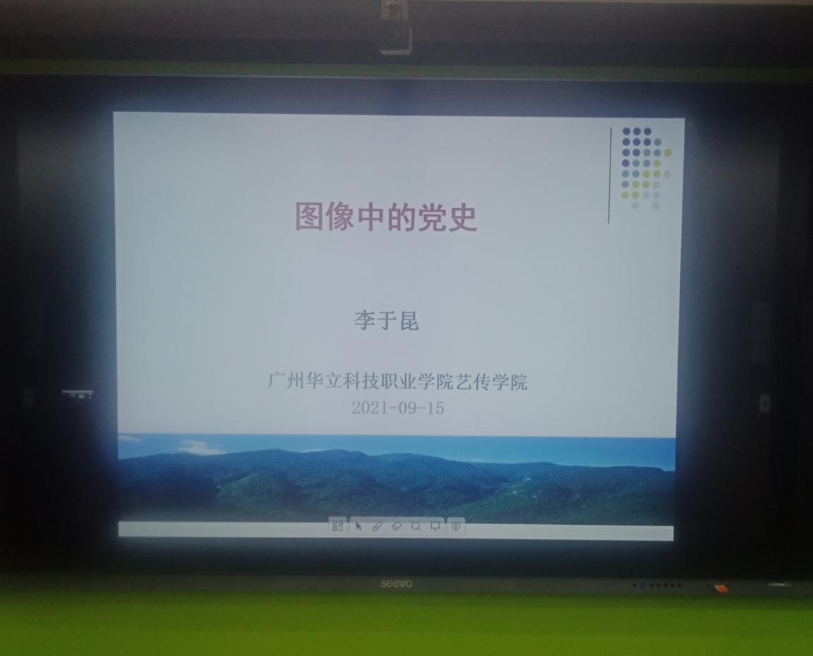 2021年9月15日下午,我院院長李于昆在西3-205智慧課室,結(jié)合藝術(shù)學(xué)科專業(yè)特色,以“圖像中的黨史” 為主題,為我院2020級環(huán)藝專業(yè)學(xué)生上了一堂獨具特色的思政課。