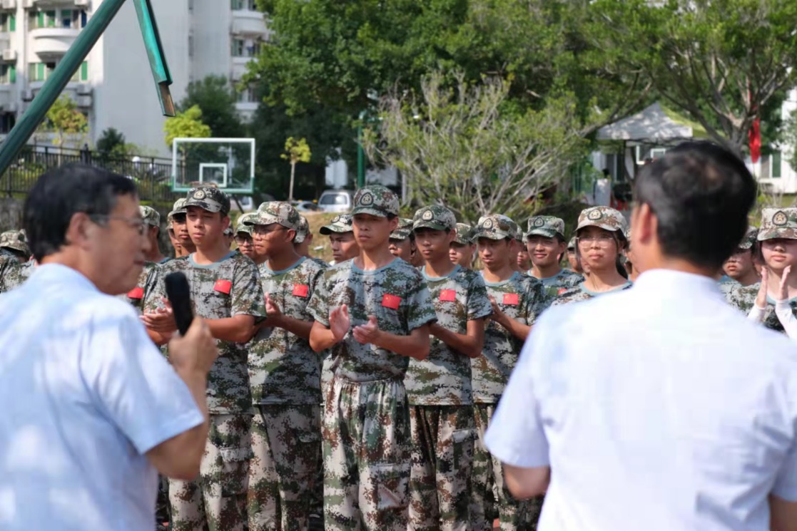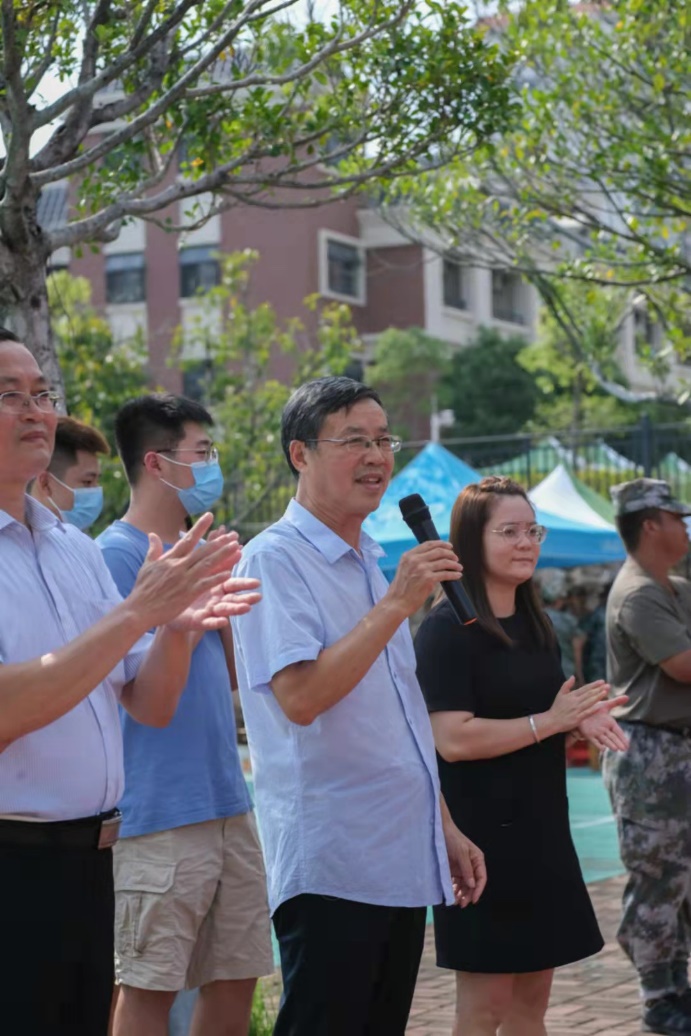 李于昆院長代表藝術(shù)與傳媒學(xué)院全體教師,首先表達(dá)了對參訓(xùn)學(xué)生的關(guān)心,鼓勵同學(xué)們發(fā)揚(yáng)嚴(yán)于律己、吃苦耐勞精神,展現(xiàn)出積極向上的精神風(fēng)貌,以高標(biāo)準(zhǔn)完成軍訓(xùn)任務(wù)。同時,他提醒同學(xué)們注意身體,在炎日的酷暑下要多喝水,共同做好疫情防控工作。中秋佳節(jié)臨近,李院長提前向軍訓(xùn)教官和同學(xué)們致以節(jié)日的問候!