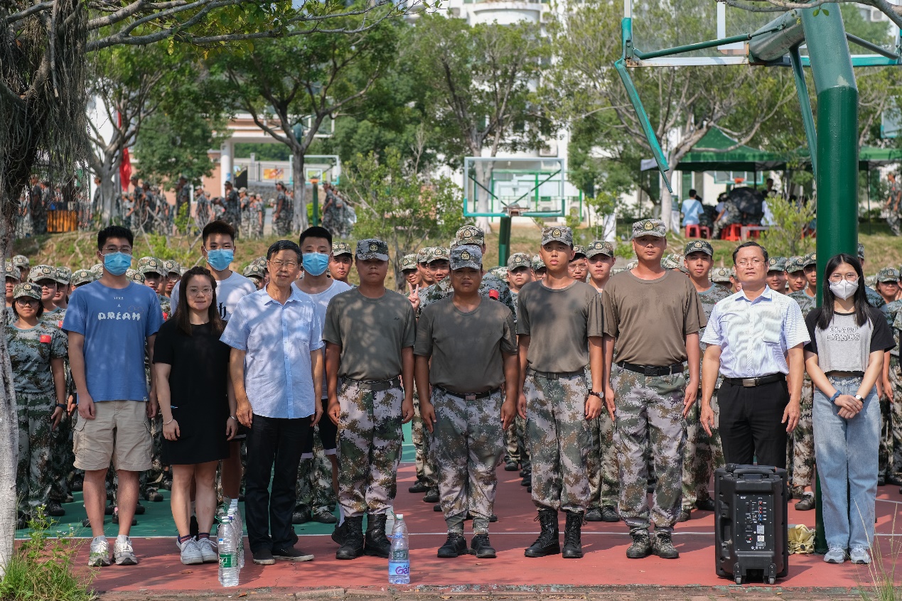 (學(xué)院領(lǐng)導(dǎo)與軍訓(xùn)教管合影留念)