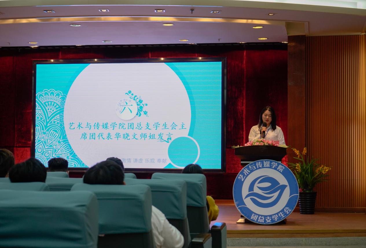 藝術(shù)與傳媒學(xué)院團(tuán)總支學(xué)生會主席團(tuán)代表華曉文師姐發(fā)言