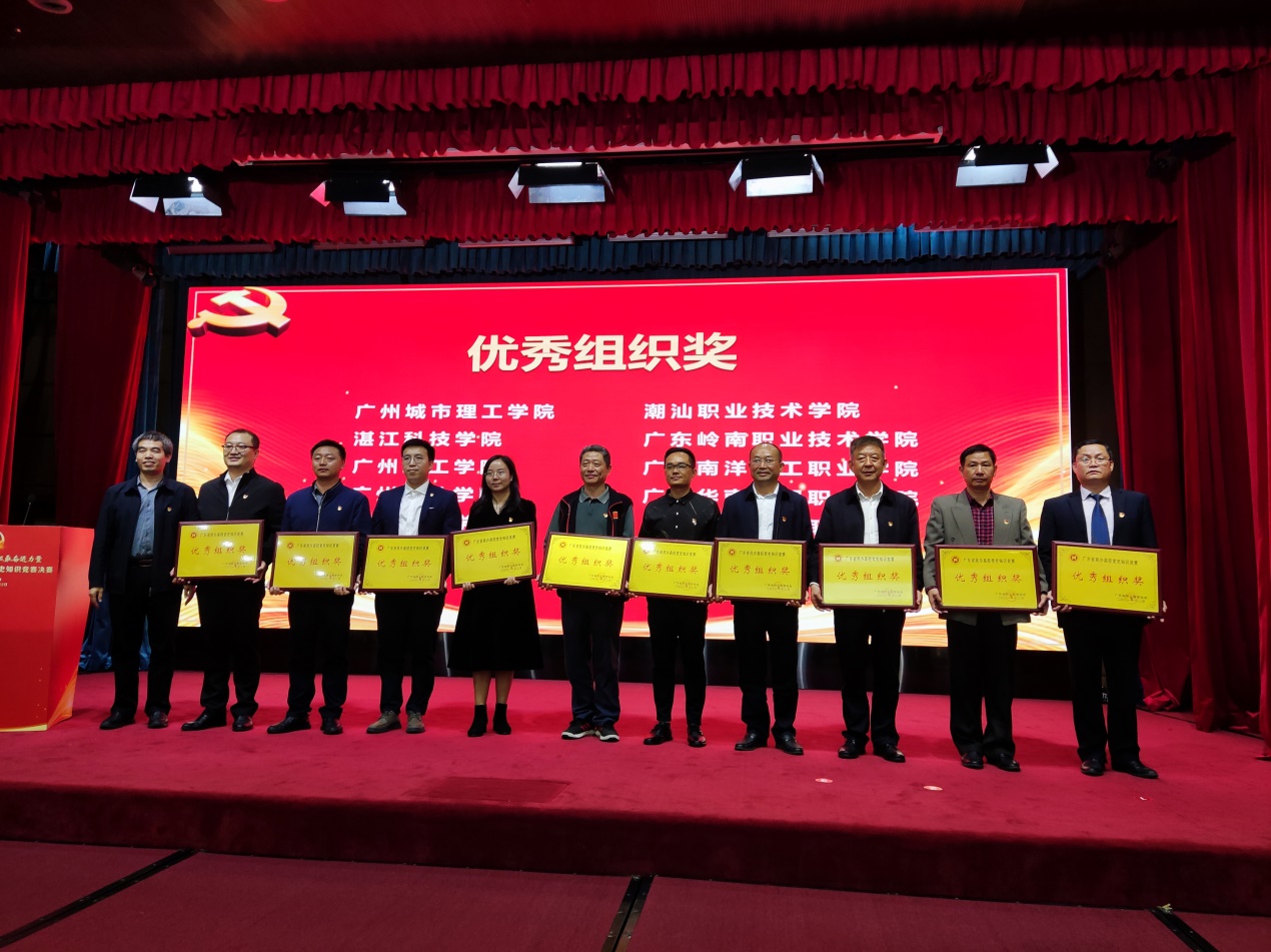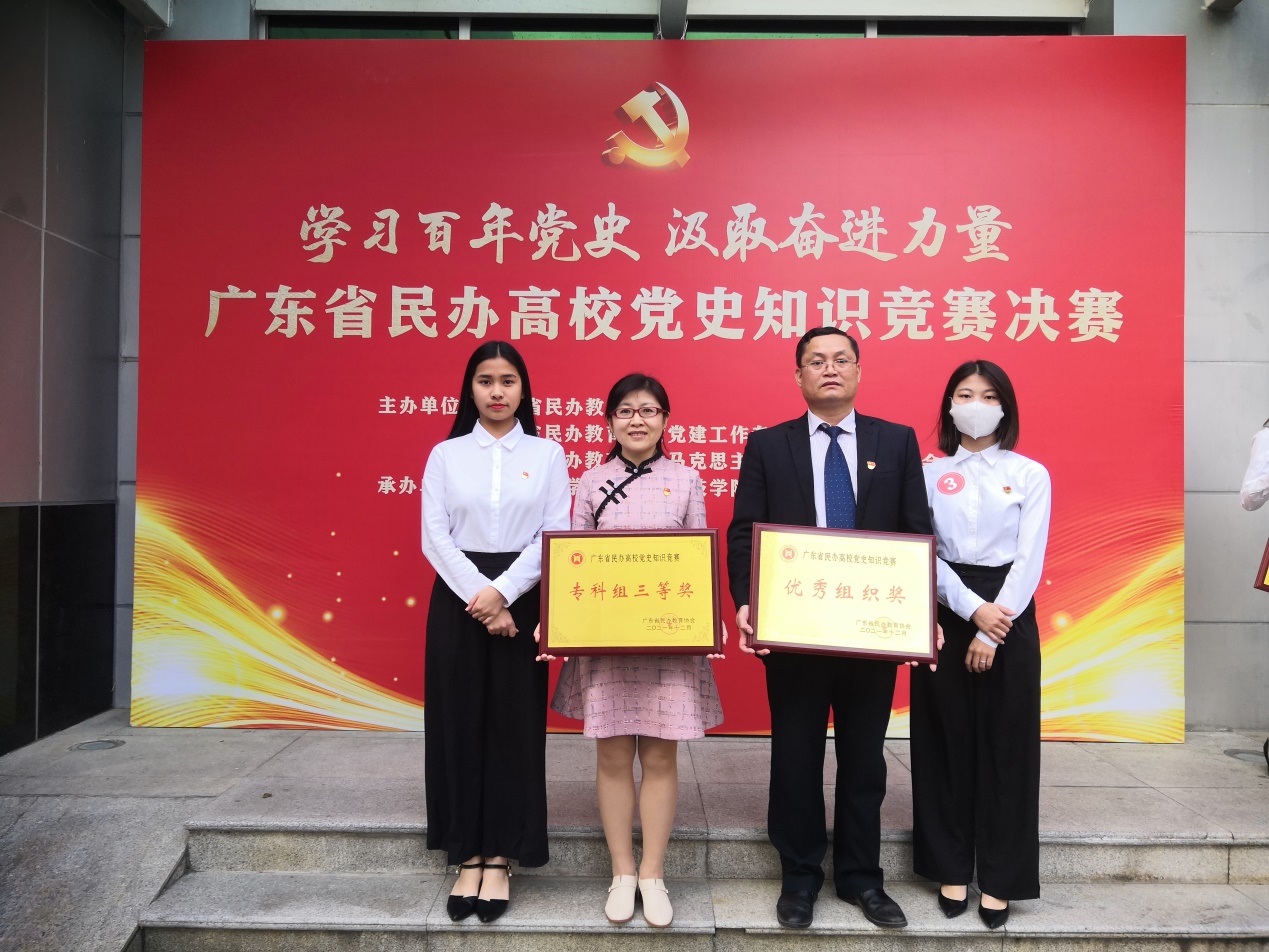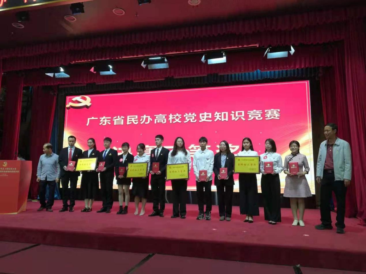 2021年12月12日,為期一個多月的廣東省民辦高校黨史知識競賽在廣州舉行決賽。我校代表隊在激烈的角逐中表現(xiàn)出色,喜獲??平M三等獎,同時還獲該項賽事的優(yōu)秀組織獎。我校藝術(shù)與傳媒學(xué)院黨總支書記孟允煌代表學(xué)校黨委領(lǐng)取了優(yōu)秀組織獎牌匾。
