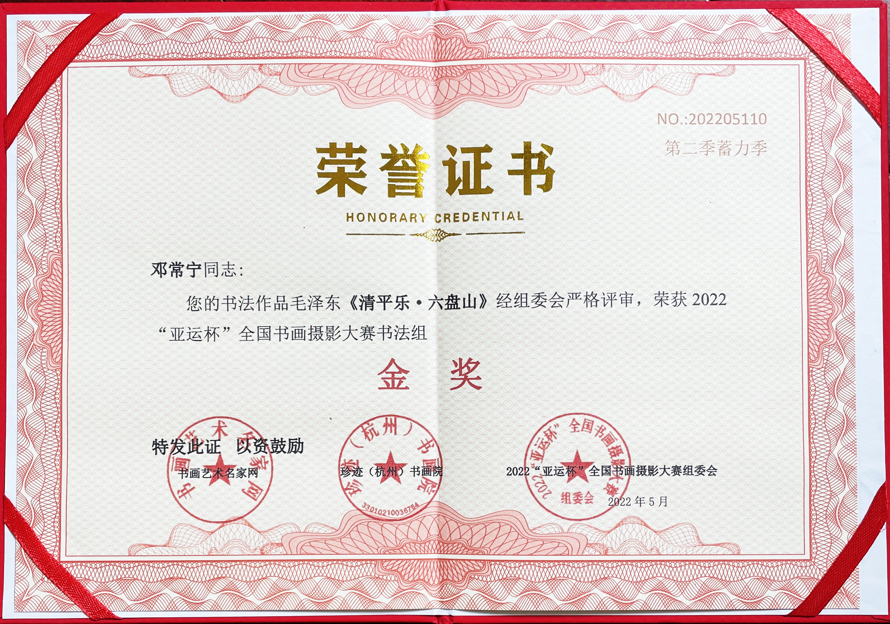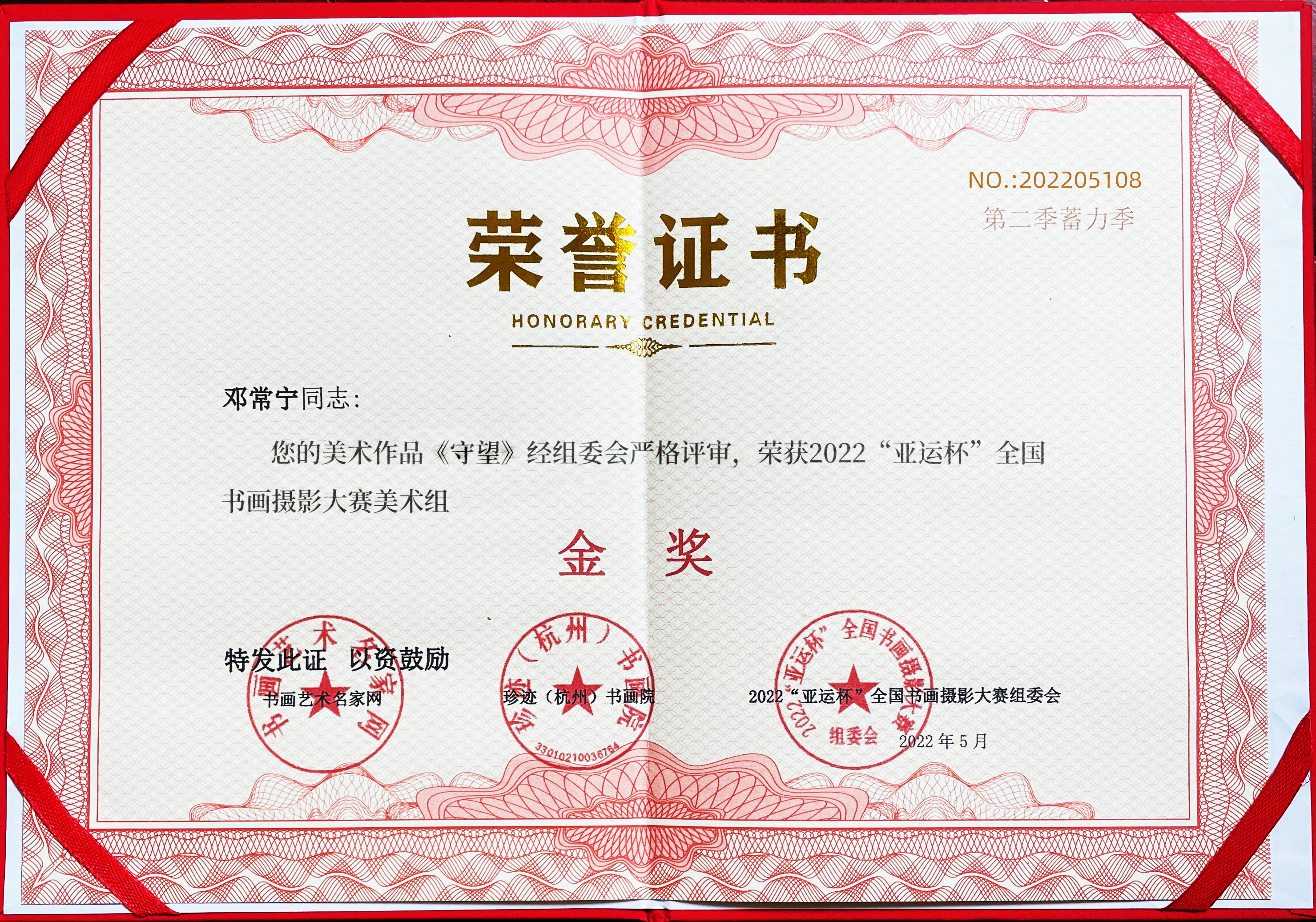 我院鄧常寧老師的美術(shù)、書法作品榮獲2022“亞運(yùn)杯”全國(guó)書畫攝影大賽金獎(jiǎng)