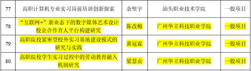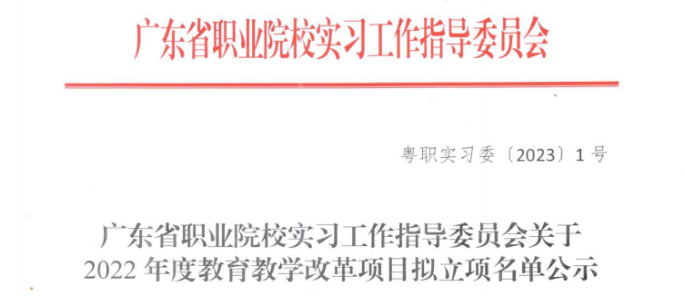 廣東省職業(yè)院校實(shí)習(xí)工作指導(dǎo)委員會(huì)2022年12月啟動(dòng)了教育教學(xué)改革項(xiàng)目申報(bào)工作,經(jīng)學(xué)校推薦、形式審查、專(zhuān)家評(píng)審等程序,現(xiàn)予以公示。根據(jù)公示結(jié)果,我校三位老師的課題獲得立項(xiàng),其中我院陳改梅老師的課題獲得立項(xiàng)。