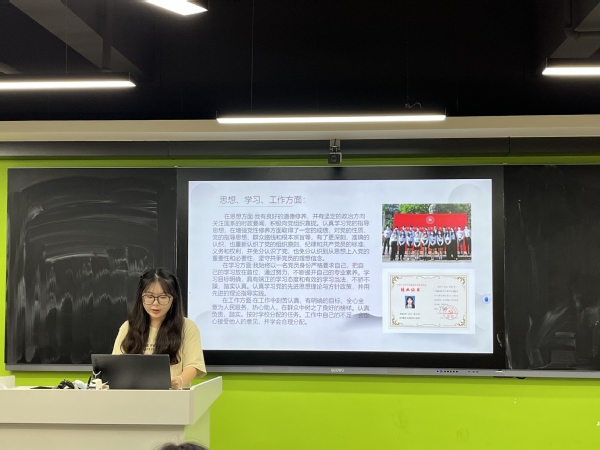 評選會上,6名候選同學通過線上線下相結合的方式進行了PPT展示,向各位評審老師介紹了自己在校期間的學業(yè)成績、學生工作經(jīng)歷、獲得榮譽、社會實踐、創(chuàng)新創(chuàng)業(yè)等情況。他們從容不迫的氣度、鏗鏘有力的發(fā)言無不凸顯著新時代中國青年的意氣風發(fā)。