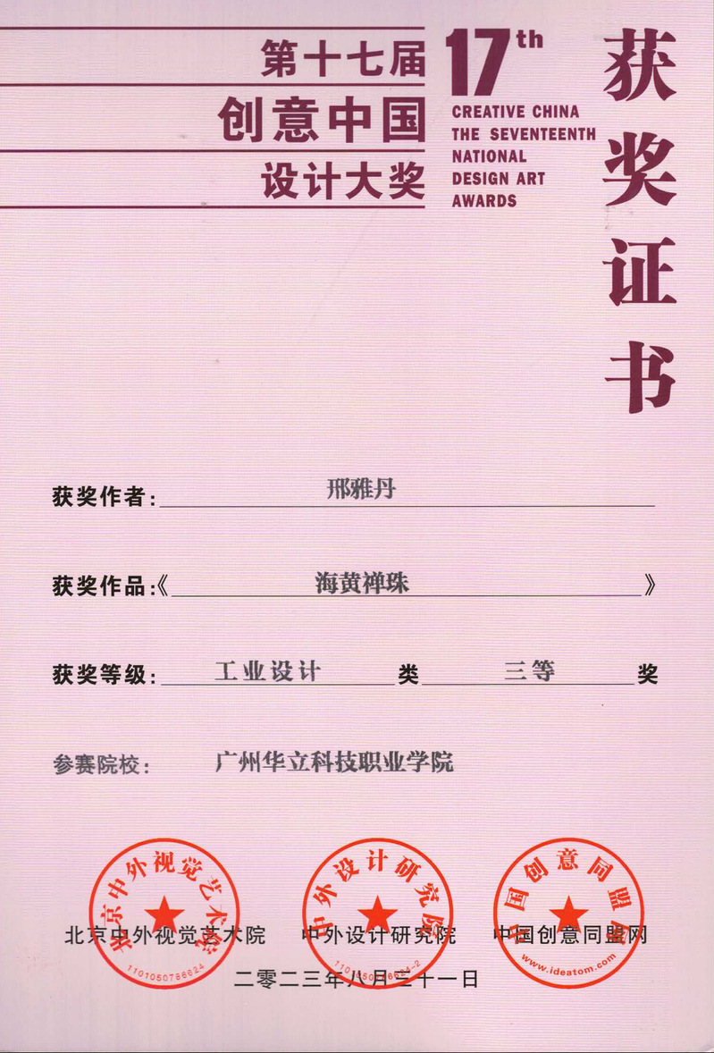 2023第十七屆“創(chuàng)意中國”設計大獎是由北京中外視覺藝術院、中外設計研究院、中國創(chuàng)意同盟主辦的全國性專業(yè)設計獎項,旨在展現(xiàn)中國創(chuàng)意設計領域的最新成果,推進我國設計人才的知名化、國際化進程。