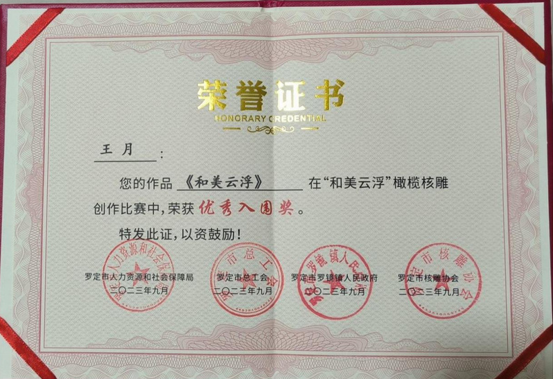 “和美云浮”橄欖核雕大賽,由云浮市文學(xué)藝術(shù)界聯(lián)合會(huì)指導(dǎo),羅定市人力資源和社會(huì)保障局、羅定市總工會(huì)、羅定市羅鏡鎮(zhèn)人民政府、羅定市核雕協(xié)會(huì)、云浮市民間文藝家協(xié)會(huì)聯(lián)合主辦。大賽參照工藝品雕刻工國(guó)家職業(yè)技能高級(jí)工標(biāo)準(zhǔn),以體現(xiàn)橄欖核雕藝術(shù)特點(diǎn)、兼具實(shí)用性、觀賞性和展示性為原則。大賽考量創(chuàng)作者的主題思想把握、核雕藝術(shù)特色、工藝手法技巧、藝術(shù)創(chuàng)意水平、形象空間美感等。自“和美云浮”橄欖核雕創(chuàng)作比賽啟動(dòng)以來(lái),得到來(lái)自:吉林、廣州、韶關(guān)、番禺和云浮市、羅定等廣大核雕創(chuàng)作藝人的積極響應(yīng)和廣泛參與,經(jīng)過(guò)1個(gè)多月的預(yù)賽和決賽比拼,9月24日,在“慶豐收促和美”—2023 廣東云浮·羅定稻米金香暨第二屆橄欖核雕文化活動(dòng)啟動(dòng)儀式上,公布了結(jié)果并舉行頒獎(jiǎng)儀式。