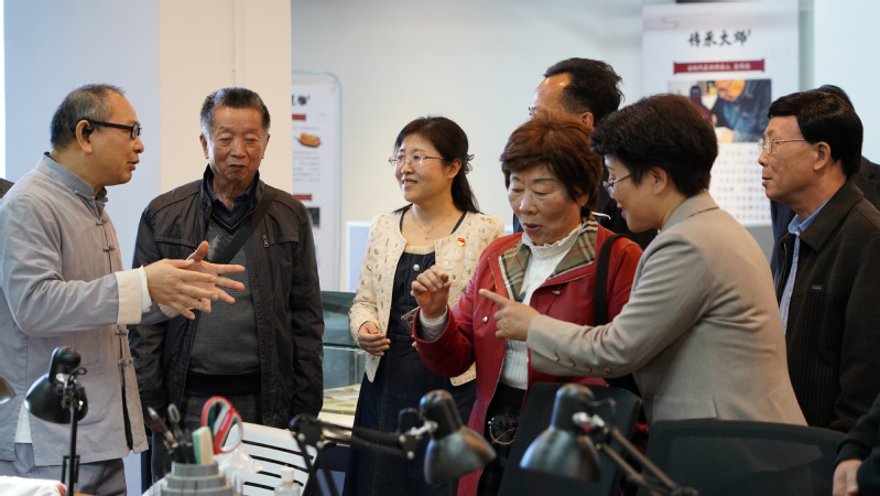 會(huì)后,藝傳學(xué)院黨總支書(shū)記陳改梅帶領(lǐng)韶關(guān)學(xué)院離退休教職工黨委一行參觀了“廣東省高校中華優(yōu)秀傳統(tǒng)文化傳承基地”欖雕藝術(shù)大師工作室,韶關(guān)學(xué)院離退休教職工黨委一行近距離地欣賞了欖雕技藝,高度贊許非遺欖雕技藝的文化魅力,充分肯定廣州華立科技職業(yè)學(xué)院將欖雕文化傳承融入人才的創(chuàng)新育人培養(yǎng)模式。