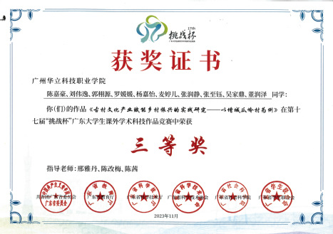 未來我院將以“挑戰(zhàn)杯”系列賽事為牽引,鼓勵(lì)院學(xué)子培養(yǎng)科研能力,弘揚(yáng)中華優(yōu)秀傳統(tǒng)文化,希望有更多莘莘學(xué)子積極投身新時(shí)代偉大實(shí)踐,為助力廣東高質(zhì)量發(fā)展、實(shí)現(xiàn)中華民族偉大復(fù)興貢獻(xiàn)青春力量。