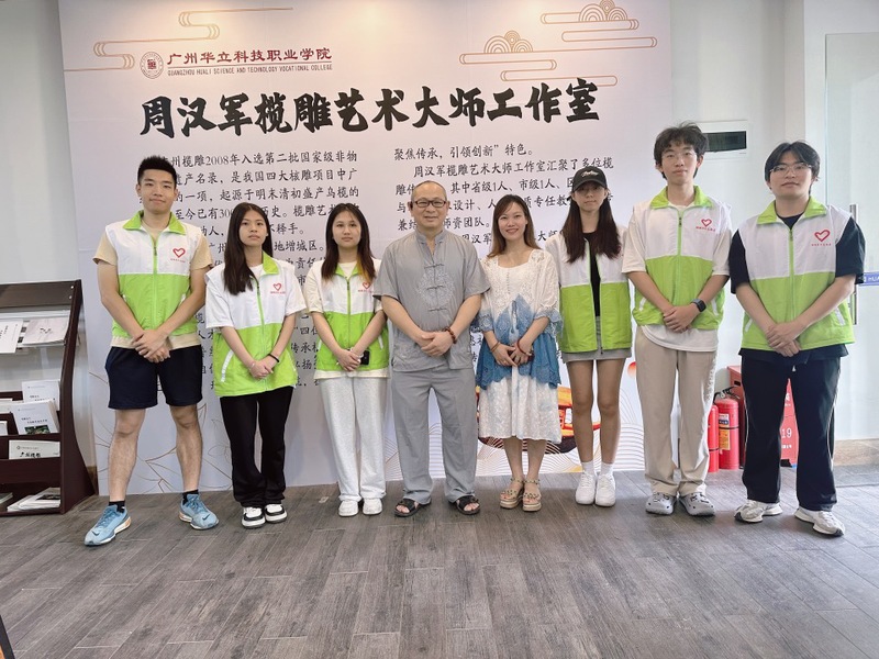 圖1 欖雕傳承人周漢軍與師生志愿者合影