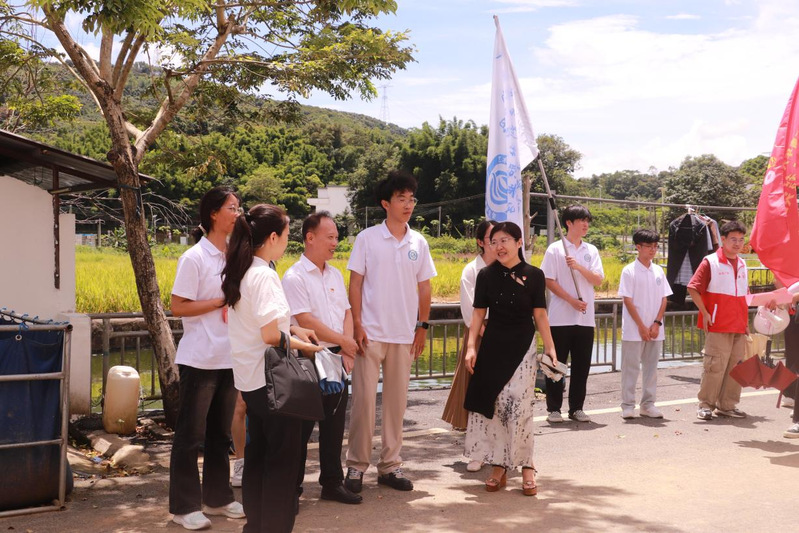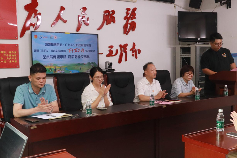 為貫徹落實(shí)廣東青年大學(xué)生“百千萬工程”突擊隊(duì)行動(dòng),進(jìn)一步明確服務(wù)目標(biāo)和工作重點(diǎn),推動(dòng)“百千萬工程”工作走深走實(shí)。7月15日上午,學(xué)校黨委書記陳良聲、黨委副書記副校長(zhǎng)王洪艷等一行赴派潭鎮(zhèn)密石村調(diào)研指導(dǎo)大學(xué)生暑期社會(huì)實(shí)踐工作,為正在開展暑期社會(huì)實(shí)踐活動(dòng)的我院“百千萬工程”奇思妙繪突擊隊(duì)師生們送上解暑慰問品,并在密石村村委會(huì)議室開展“百千萬工程”交流座談會(huì)。學(xué)校黨委組織部組織科副科長(zhǎng)陳曉微、團(tuán)委副書記林靜珊、計(jì)算機(jī)信息工程學(xué)生黨總支專職副書記朱志豪陪同走訪。派潭鎮(zhèn)黨政綜合辦公室主任姚利利、派潭鎮(zhèn)密石村副村長(zhǎng)黃藝華、以及“百千萬工程”奇思妙繪突擊隊(duì)全體師生出席本次會(huì)議。