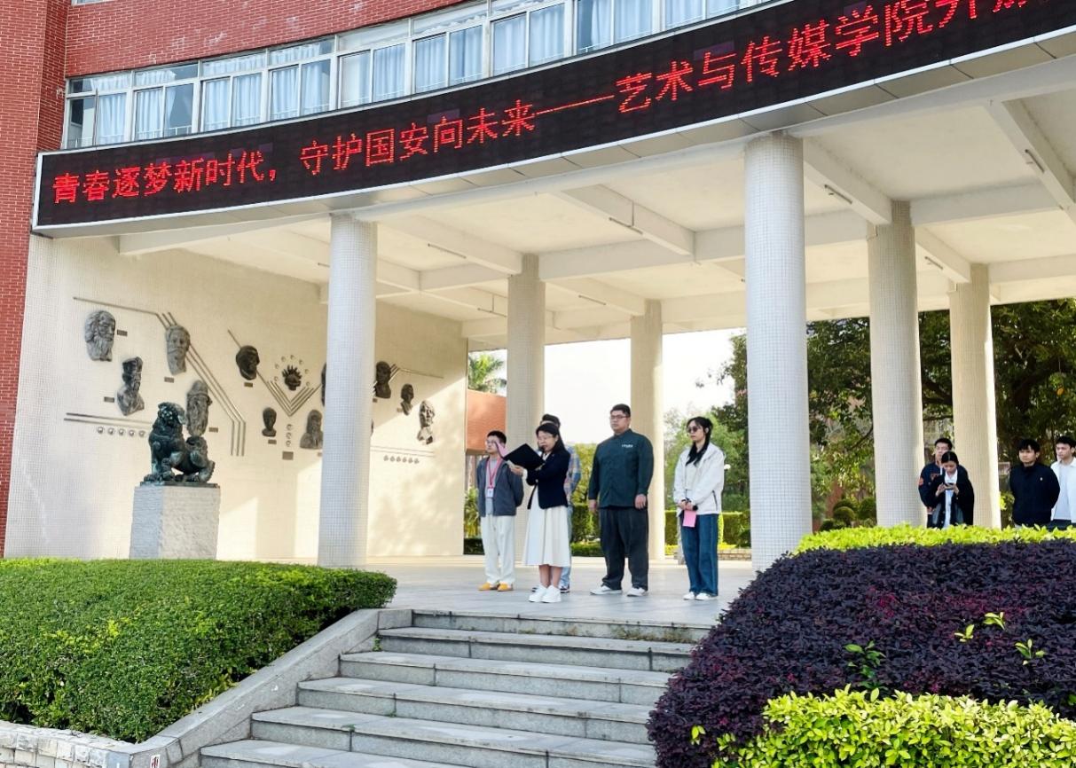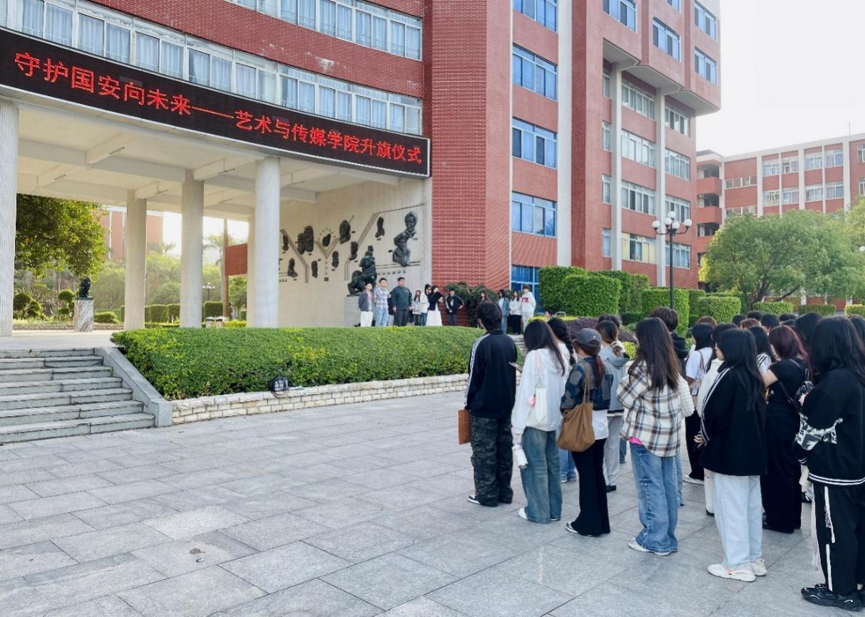 為增強師生國家安全意識,培養(yǎng)青年學子的愛國情懷與責任擔當,2025年4月14日清晨,藝術(shù)與傳媒學院全體師生在綜合樓舉行了以“青春逐夢新時代,守護國安向未來”為主題的升國旗暨國家安全宣傳活動。