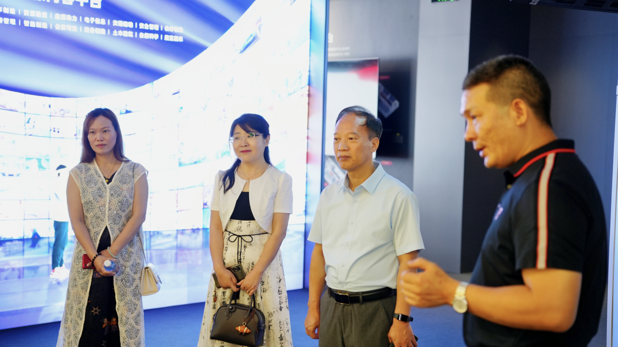 校企交流會(huì)前,在上海曼恒數(shù)字技術(shù)股份有限公司(華南總部)總經(jīng)理譚永冰的陪同下,陳良聲書(shū)記一行參觀了公司展廳及公司內(nèi)部環(huán)境,深入了解了企業(yè)的發(fā)展歷程、企業(yè)文化和業(yè)務(wù)布局。