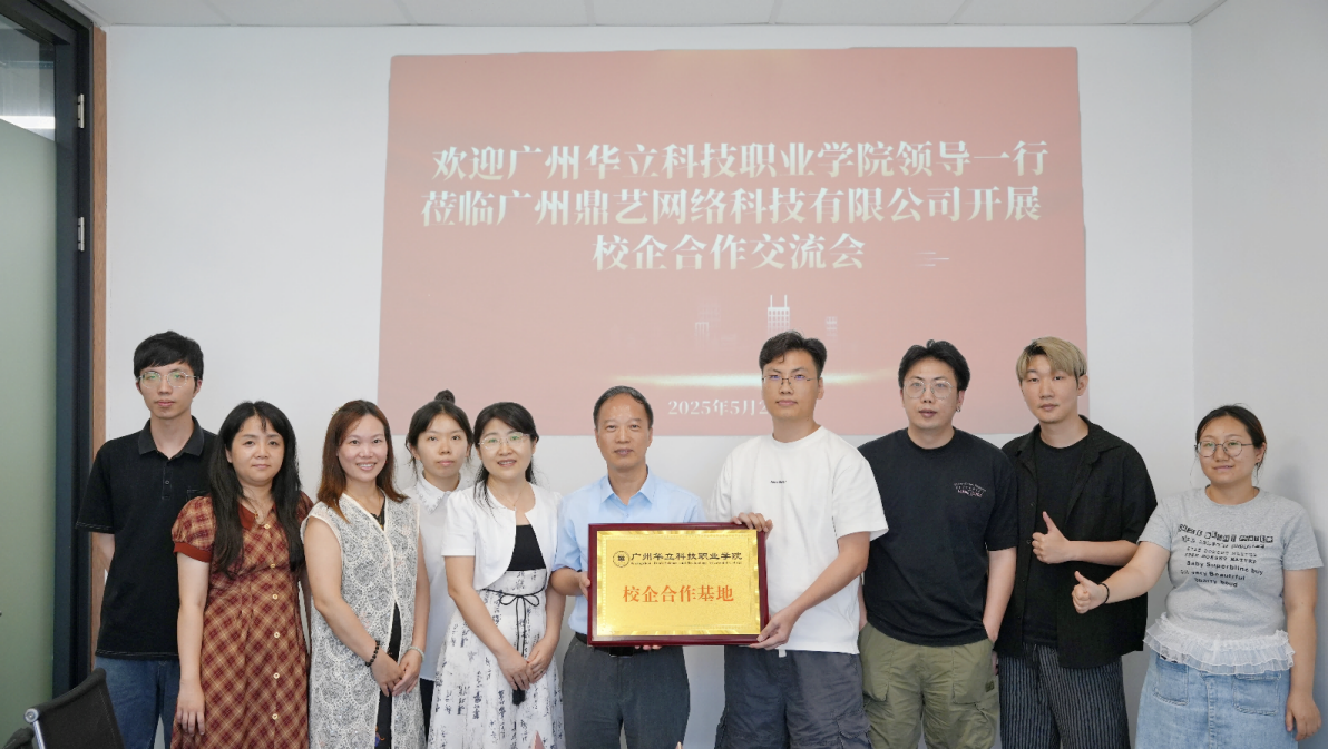 2025 年 5 月 20 日下午 2 點(diǎn),我校與廣州鼎藝網(wǎng)絡(luò)科技有限公司校企合作洽談儀式在鼎藝公司會(huì)議室順利舉行。圍繞“黨建引領(lǐng)、資源共享、協(xié)同育人” 的目標(biāo),共同探討校企合作新路徑,并舉行校企合作基地授牌儀式,為培養(yǎng)適應(yīng)新時(shí)代產(chǎn)業(yè)需求的高素質(zhì)技術(shù)技能人才奠定堅(jiān)實(shí)基礎(chǔ)。