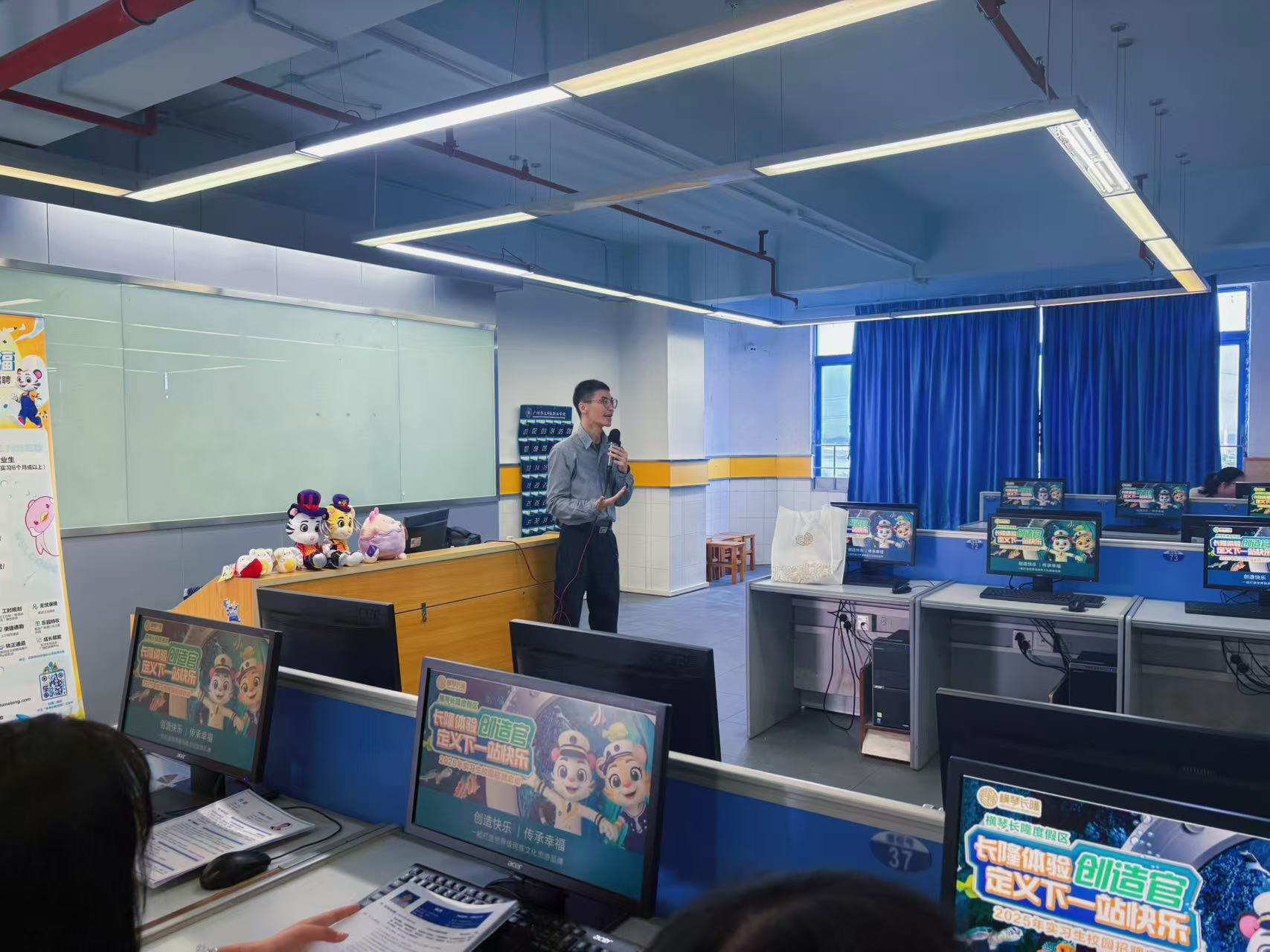 宣講伊始,企業(yè)代表羅經(jīng)理通過(guò)生動(dòng)案例與詳實(shí)數(shù)據(jù),深入解讀珠海長(zhǎng)隆的企業(yè)文化。從宏偉愿景,到以創(chuàng)新、服務(wù)、團(tuán)隊(duì)協(xié)作為核心的企業(yè)價(jià)值觀,全方位展現(xiàn)了企業(yè)的文化魅力與行業(yè)影響力。隨后,羅經(jīng)理聚焦招聘板塊,詳細(xì)介紹文創(chuàng)設(shè)計(jì)、工程技術(shù)、園區(qū)接待等多個(gè)領(lǐng)域的豐富崗位。