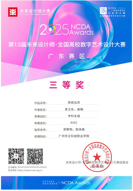 在2025年舉辦的第13屆未來設(shè)計師·全國高校數(shù)字藝術(shù)設(shè)計大賽(NCDA)中,藝術(shù)與傳媒學(xué)院師生憑借其卓越的創(chuàng)意和精湛的技術(shù),榮獲多項大獎。未來設(shè)計師·全國高校數(shù)字藝術(shù)設(shè)計大賽(NCDA)是入選《全國普通高校大學(xué)生競賽排行榜》,近20家省教育廳認(rèn)定,“學(xué)習(xí)強(qiáng)國”學(xué)習(xí)平臺支持,對接聯(lián)合國國際賽的全國性大學(xué)生競賽。是高校教育教學(xué)改革和創(chuàng)新人才培養(yǎng)的重要競賽項目之一,具有極高的知名度與影響力。本次大賽是由全國高校數(shù)字藝術(shù)設(shè)計專業(yè)委員會主辦,旨在挖掘和培養(yǎng)數(shù)字藝術(shù)設(shè)計領(lǐng)域的未來之星,大賽已連續(xù)舉辦13屆,為藝術(shù)設(shè)計領(lǐng)域的高水平知名賽事,是我院師生積極參與的重要專業(yè)競賽之一。