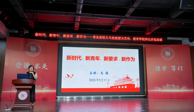 秋意漸濃啟新程,思想領航聚力量。9 月 11 日晚 6 點,學校常務副校長馬俊教授以“新時代、新青年、新要求、新作為”為主題,在圖書館八樓報告廳為藝術與傳媒學院、教育學院的700名師生代表們講授了“思政第一課”。馬俊教授用深刻的理論闡釋、鮮活的實踐案例,為在場師生打造了一堂兼具思想深度與情感溫度的思政課。