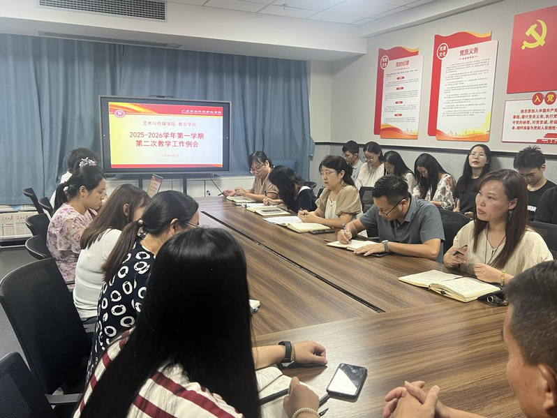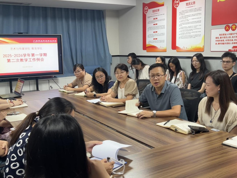 9月5日中午,藝術(shù)與傳媒學(xué)院在學(xué)院會(huì)議室成功召開全體任課教師教學(xué)工作例會(huì)。此次會(huì)議聚焦教風(fēng)建設(shè),旨在全面提升教學(xué)質(zhì)量與人才培養(yǎng)水平,為學(xué)院高質(zhì)量發(fā)展奠定堅(jiān)實(shí)基礎(chǔ)。學(xué)院院長朱君、黨總支書記陳改梅及全體任課教師共同出席此次會(huì)議。