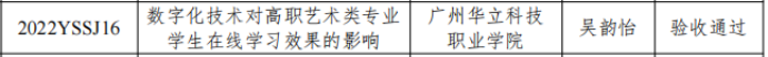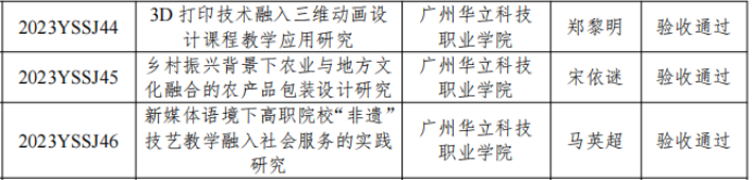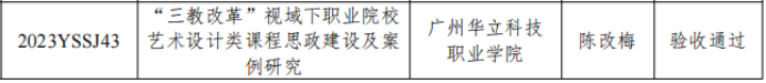 近日,依據(jù)廣東省職業(yè)學(xué)校藝術(shù)設(shè)計類專業(yè)教學(xué)指導(dǎo)委員會發(fā)布的《廣東省職業(yè)學(xué)校藝術(shù)設(shè)計類專業(yè)教學(xué)指導(dǎo)委員會2022-2023年度教育教學(xué)改革項目2025年結(jié)題驗收結(jié)果的通知》(粵職藝術(shù)設(shè)計教指委〔2025〕5號),我校傳來喜訊:由馬俊教授主持的《非遺藝術(shù)價值發(fā)現(xiàn)與服務(wù)大眾相關(guān)問題研究——以廣州欖雕為例》(項目編號:2022YSSJ65)、吳韻怡副教授主持的《數(shù)字化技術(shù)對高職藝術(shù)類專業(yè)學(xué)生在線學(xué)習(xí)效果的影響》(項目編號:2022YSSJ16)、黎映如副教授主持的《基于1+X證書制度的藝術(shù)設(shè)計專業(yè)“崗課賽證”融通的實踐探索》(項目編號:2022YSSJ72)、陳改梅副教授主持的《“三教改革”視域下職業(yè)院校藝術(shù)設(shè)計類課程思政建設(shè)及案例研究》(項目編號:2023YSSJ43)、鄭黎明副教授主持的《3D打印技術(shù)融入三維動畫設(shè)計課程教學(xué)應(yīng)用研究》(項目編號:2023YSSJ44)、宋依謎副教授主持的《鄉(xiāng)村振興背景下農(nóng)業(yè)與地方文化融合的農(nóng)產(chǎn)品包裝設(shè)計研究》(項目編號:2023YSSJ45)、馬英超副教授主持的《新媒體語境下高職院校“非遺”技藝教學(xué)融入社會服務(wù)的實踐研究》(項目編號:2023YSSJ46)這7項教育教學(xué)改革項目均圓滿通過結(jié)題驗收。廣州華立科技職業(yè)學(xué)院在此次教改浪潮中斬獲豐碩成果,在數(shù)字化教學(xué)、非遺傳承、產(chǎn)教融合等多個關(guān)鍵領(lǐng)域交出了一份令人眼前一亮的創(chuàng)新答卷,為藝術(shù)設(shè)計類職業(yè)教育的高質(zhì)量發(fā)展注入了源源不斷的強勁動力。