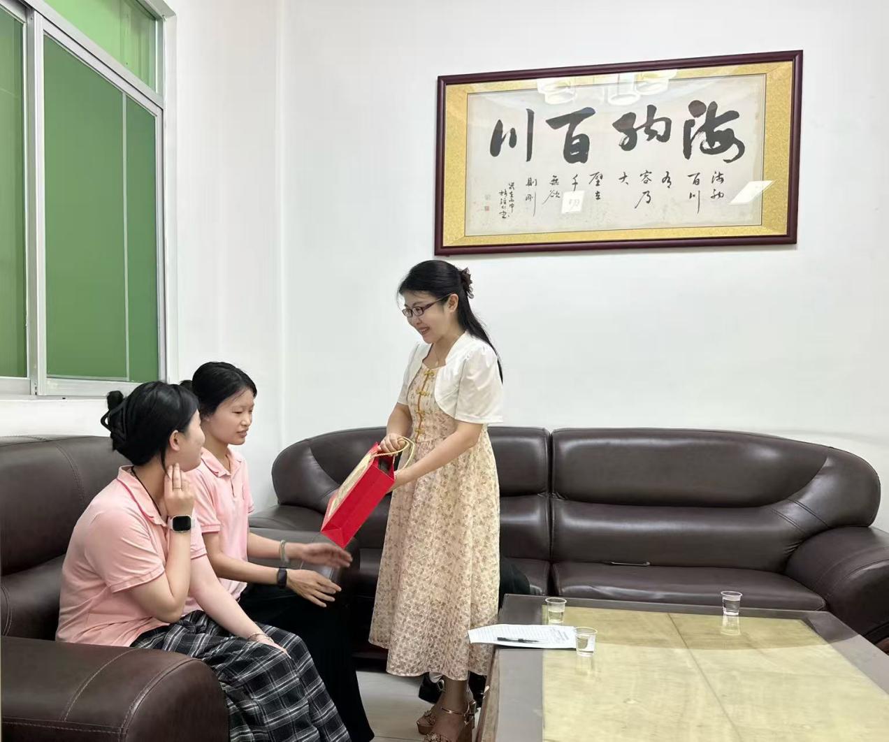 中秋月圓,國(guó)慶同輝。在中秋、國(guó)慶雙節(jié)即將來臨之際,9月25日,廣州華立科技職業(yè)學(xué)院藝術(shù)與傳媒學(xué)院黨總支書記陳改梅與校外教學(xué)干事胡雅如一行前往增城區(qū)增江街小天才幼兒園,親切慰問了在此校外教學(xué)的學(xué)子,并與幼兒園園長(zhǎng)進(jìn)行了深入交流,向幼兒園以及學(xué)生送上了節(jié)日的溫暖與祝福。