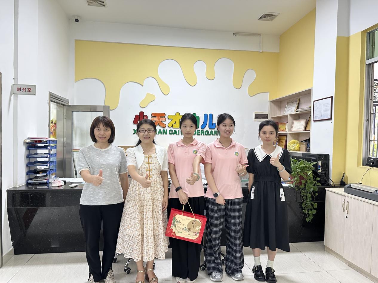 中秋月圓,國(guó)慶同輝。在中秋、國(guó)慶雙節(jié)即將來(lái)臨之際,9月25日,廣州華立科技職業(yè)學(xué)院藝術(shù)與傳媒學(xué)院黨總支書(shū)記陳改梅與校外教學(xué)干事胡雅如一行前往增城區(qū)增江街小天才幼兒園,親切慰問(wèn)了在此校外教學(xué)的學(xué)子,并與幼兒園園長(zhǎng)進(jìn)行了深入交流,向幼兒園以及學(xué)生送上了節(jié)日的溫暖與祝福。