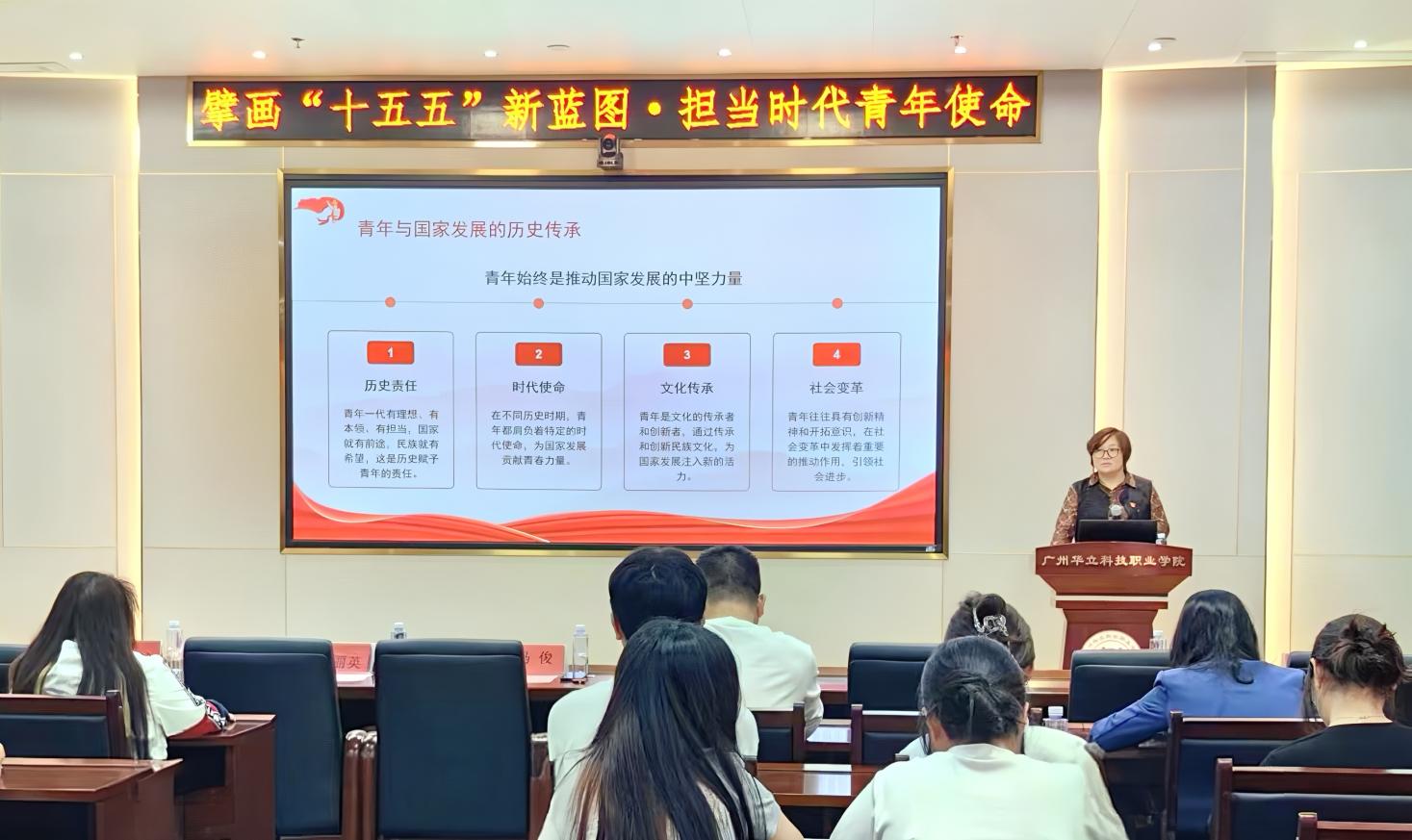為引導(dǎo)青年學(xué)子讀懂國家發(fā)展大勢,找準(zhǔn)職業(yè)定位,提振學(xué)習(xí)成才的激情和動力,以實(shí)干擔(dān)當(dāng)奔赴新征程,3月18日,在圖書館104會議室,學(xué)校常務(wù)副校長馬俊教授以“擘畫‘十五五’新藍(lán)圖·擔(dān)當(dāng)時(shí)代青年使命”為主題,為藝術(shù)與傳媒學(xué)院師生帶來一堂有深度、有溫度、有力度的思政第一課,學(xué)院黨總支書記陳改梅、院長朱君、黨總支專職副書記劉嘉怡參加聽課。學(xué)生代表齊聚課堂,認(rèn)真聆聽、深入思考,現(xiàn)場氛圍莊重而熱烈。