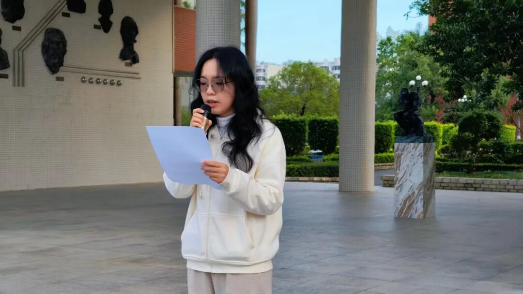 藝術(shù)與傳媒學(xué)院學(xué)管主任劉嘉怡在儀式上發(fā)表講話,強(qiáng)調(diào)全體學(xué)子要以專業(yè)實(shí)踐踐行主題精神,立足專業(yè)領(lǐng)域?qū)W⑸罡?,摒棄浮躁心態(tài)、篤行實(shí)干。她鼓勵(lì)大家將奮進(jìn)信念融入藝術(shù)創(chuàng)作與育人實(shí)踐,以扎實(shí)專業(yè)能力在各自賽道逐夢(mèng)前行,切實(shí)彰顯青年一代的責(zé)任與擔(dān)當(dāng)。此次儀式進(jìn)一步凝聚了兩院師生共識(shí),引導(dǎo)大家以實(shí)干踐行使命,用奮斗書(shū)寫青春華章,充分展現(xiàn)藝傳風(fēng)采與教育擔(dān)當(dāng)。