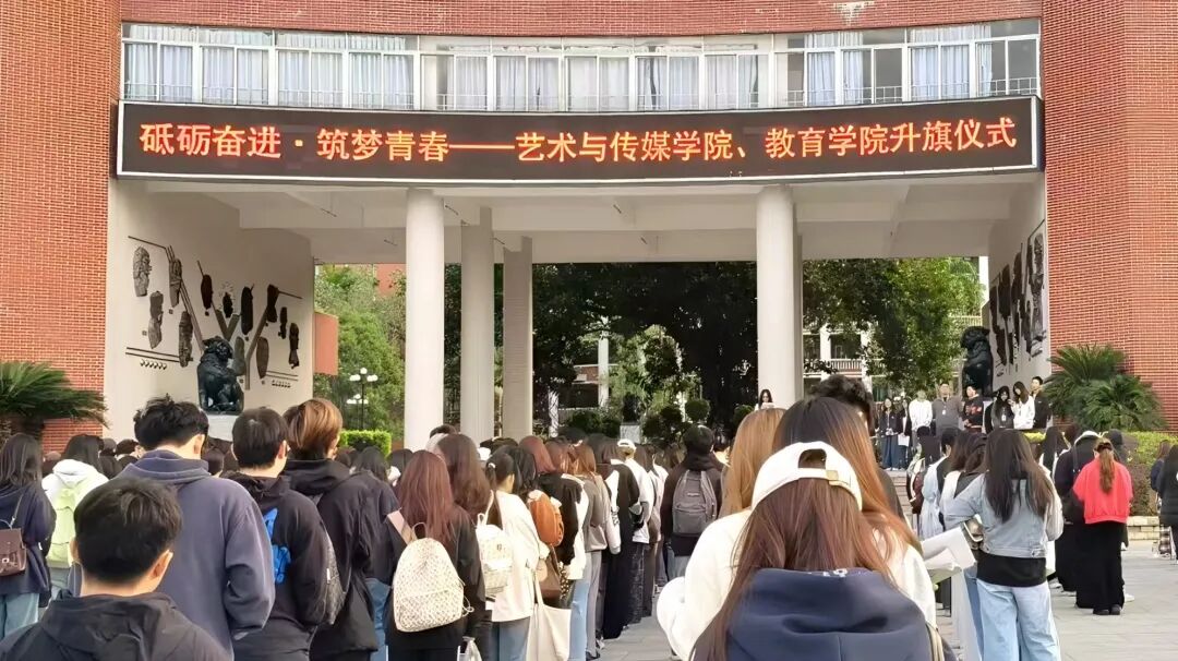 11月24日清晨,藝術(shù)與傳媒學(xué)院與教育學(xué)院聯(lián)合舉行 “砥礪奮進(jìn)?筑夢(mèng)青春” 主題升旗儀式,兩院師生整齊列隊(duì),共同參加此次莊嚴(yán)儀式。清晨,國(guó)旗護(hù)衛(wèi)隊(duì)邁著鏗鏘有力的步伐入場(chǎng),在全體師生的注目下,五星紅旗伴隨著雄壯的國(guó)歌冉冉升起、迎風(fēng)飄揚(yáng)。這抹鮮紅不僅是信仰的底色,更成為兩院學(xué)子 “筑夢(mèng)青春” 的創(chuàng)作注腳與奮進(jìn)序章,為青年學(xué)子的成長(zhǎng)之路注入昂揚(yáng)的精神力量。